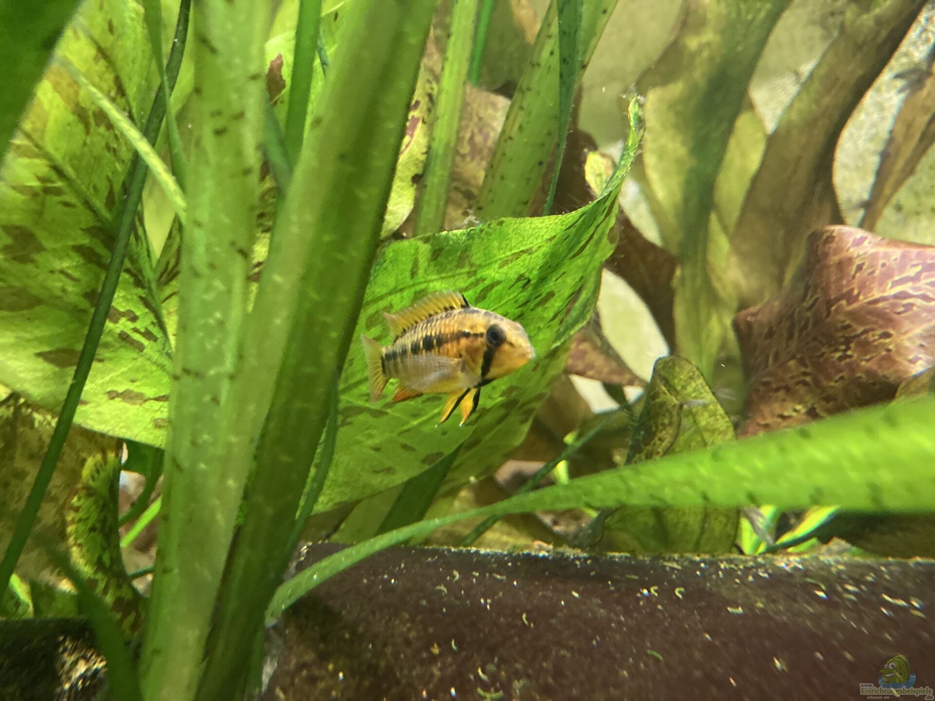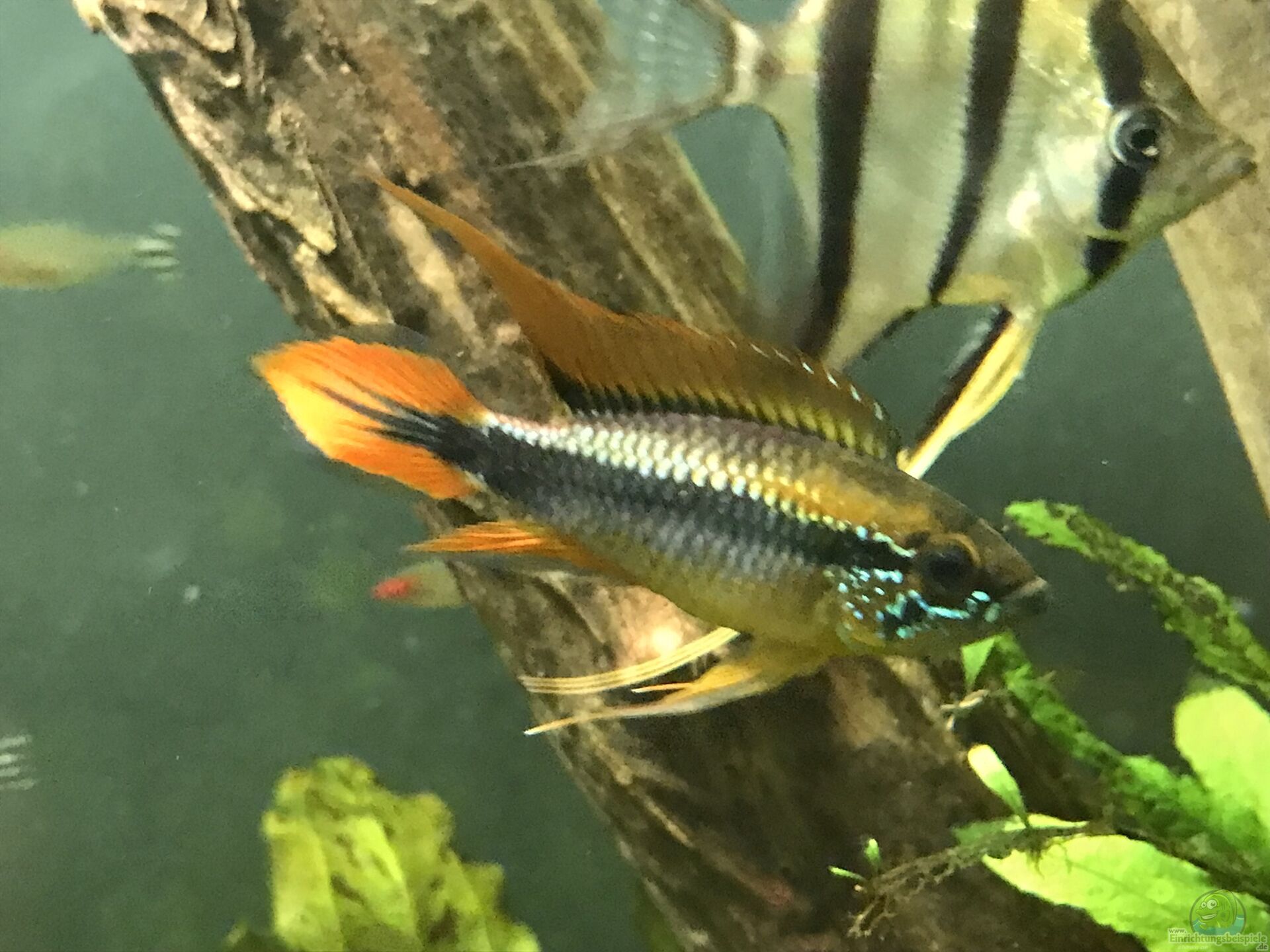 Diese Oberflächenfische halten sich ausschließlich im oberen Bereich des Aquariums auf und haben daher kaum Berührungspunkte mit den Zwergbuntbarschen. - Kleine Harnischwelse