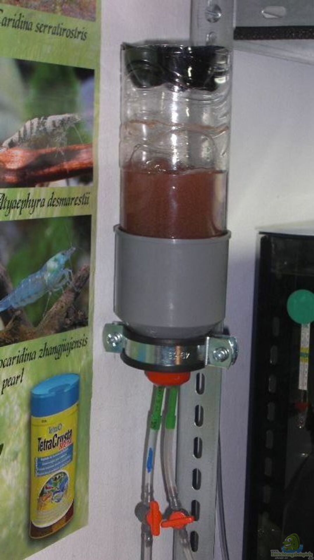 zum Artemia füttern nehme ich ein Sieb mit einem Behälter darunter, einfach Absperrventil für Luft ca. 2 Minuten vor dem füttern zudrehen, dann setzen sich die Artemias unten ab, nun einfach über das 2. Absperrventil unten abzapfen, die Artemias bleiben im Sieb hängen,