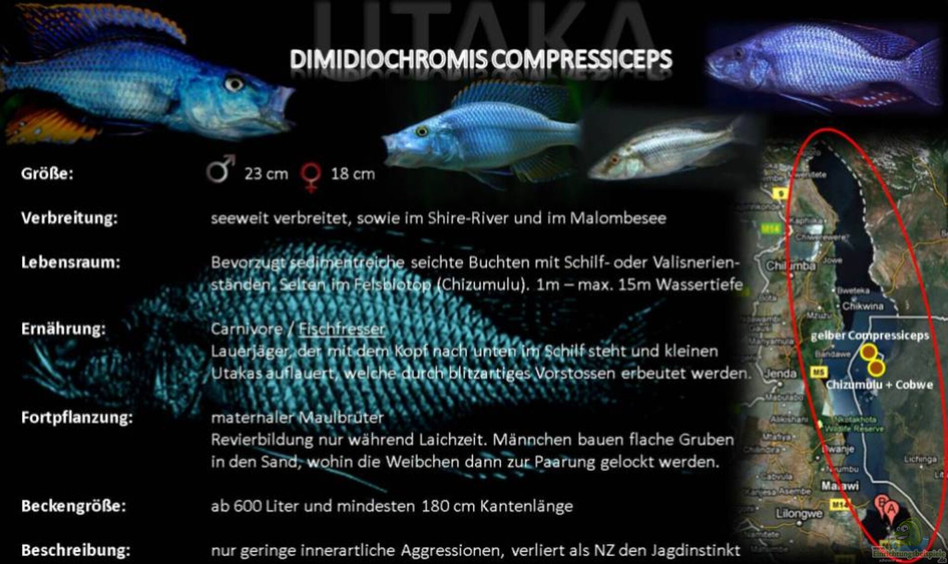 D. Compressiceps ist seeweit verbreitet und kann sogar im Sihre-River (Verbindungsfluss zwischen Malawisee und dem Lake Malombe) und im Lake Malombe beobachtet werden.