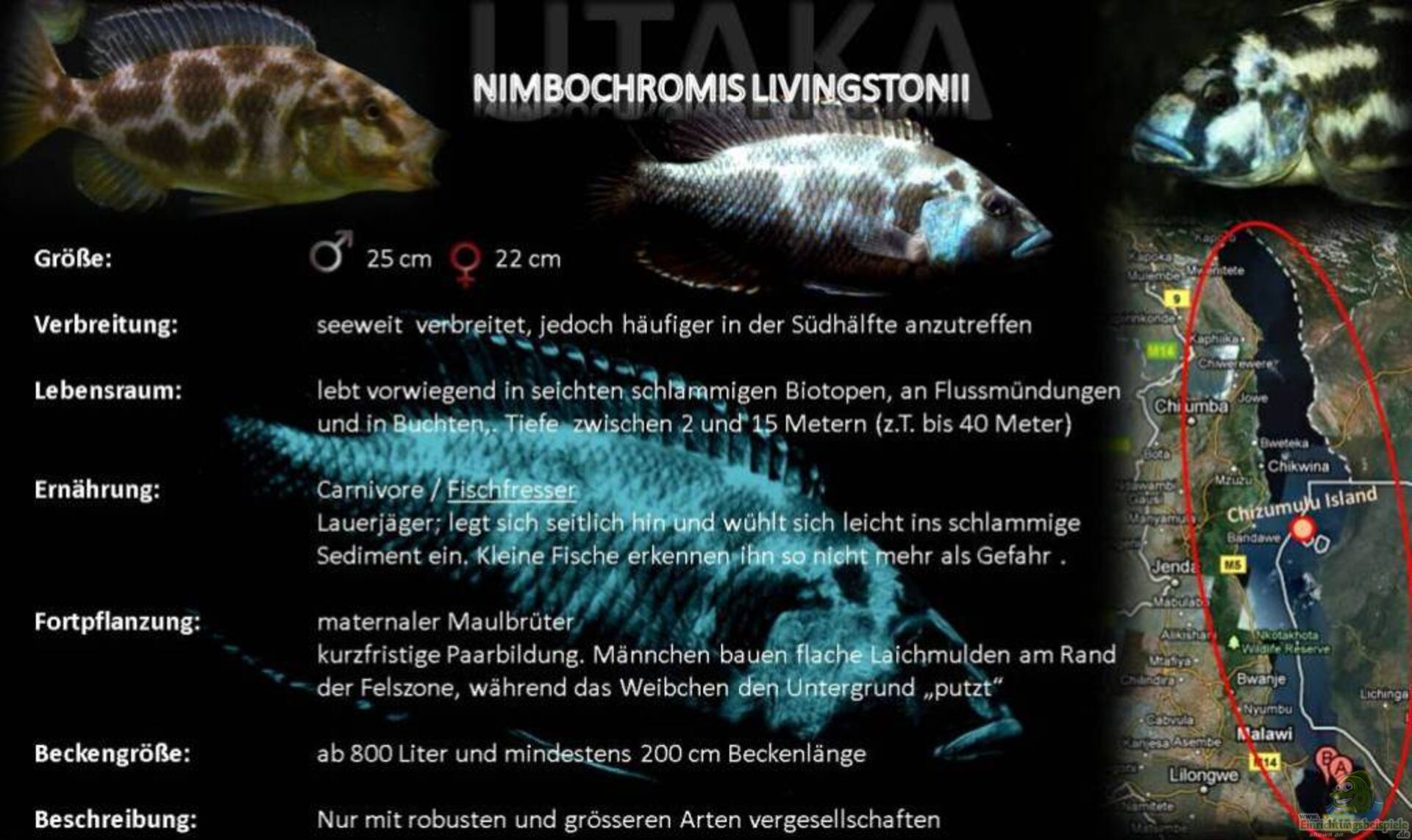 [i]WICHTIG: eine Vergesellschaftung mit anderen Nimbochromis-Arten birgt das Risiko von Kreuzungen und somit der Hybridisierung!