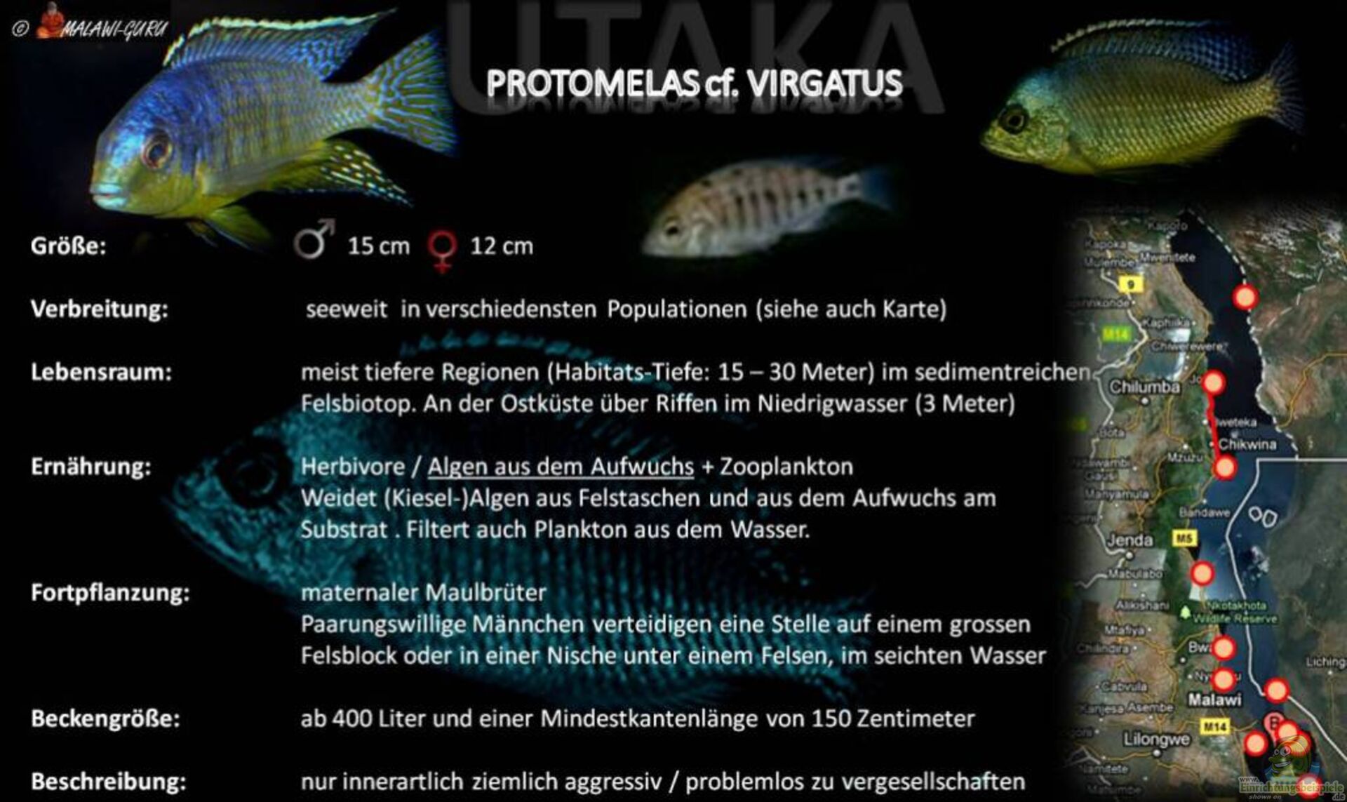 P. cf. virgatus gehört, wie auch der bei Aquarianern sehr beliebte Protomelas sp. ???steveni taiwan???, zum Steveni-Komplex. Einerseits wurden solche Steveni-Angehörigen entweder nach ihrer Musterung, oder aber nach Ihren Fundorten benannt:
