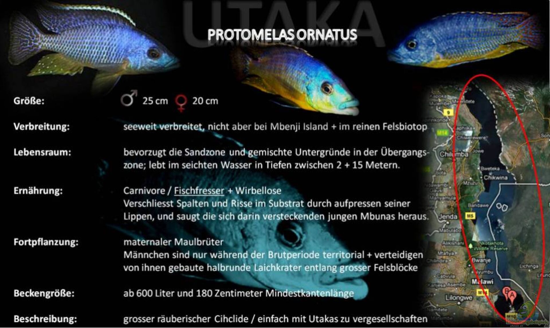 Die Vergesellschaftung mit Mbunas der ??bergangszone würde den natürlichen Begebenheiten am nächsten kommen. Allerdings sollten es dann entweder Plankton fressende Arten (z.Bsp. Cynotilapias) sein, oder P. ornatus soll sich hauptsächlich vom Mbuna-Nachwuchs ernähren. Eine solche Vergesellschaftung setzt aber sehr viel Erfahrung voraus.