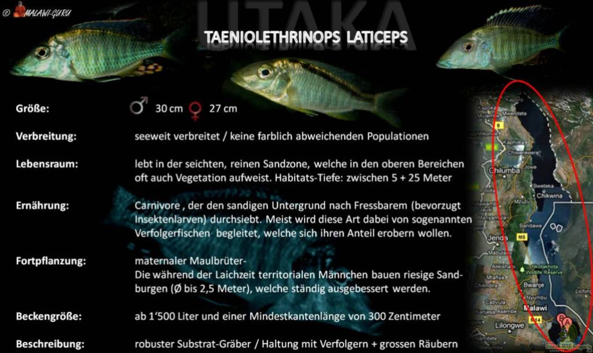 Wie auch seine Schwester-Arten (T. praeorbitalis, T. furcicauda) wird Taeniolethrinops laticeps oft fälschlicherweise unter dem Namen ???Lethrinops furcifer??? exportiert und über den Fachhandel angeboten. Wir sprechen hier also von 3 Taeniolethrinops-Arten, welche oftmals unter dem Namen eines echten, und vor allem existenten, Lethrinops in unsere Aquarien geraten.