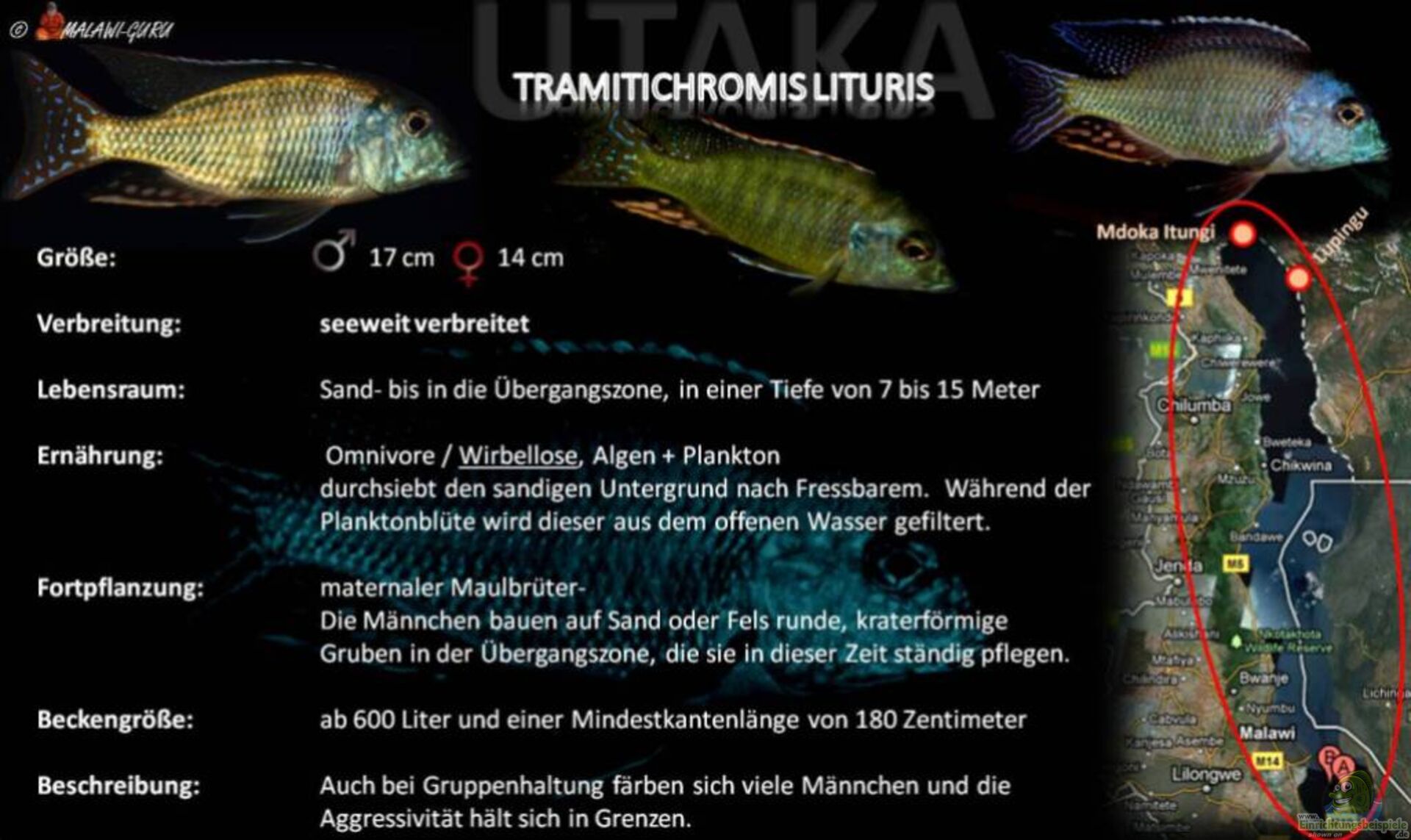 >> Das Pigmentierungsmuster (3 Punkte auf der Flanke ??? vor allem bei den Weibchen erkennbar) stimmt nicht mit demjenigen der Gattung Lethrinops überein.