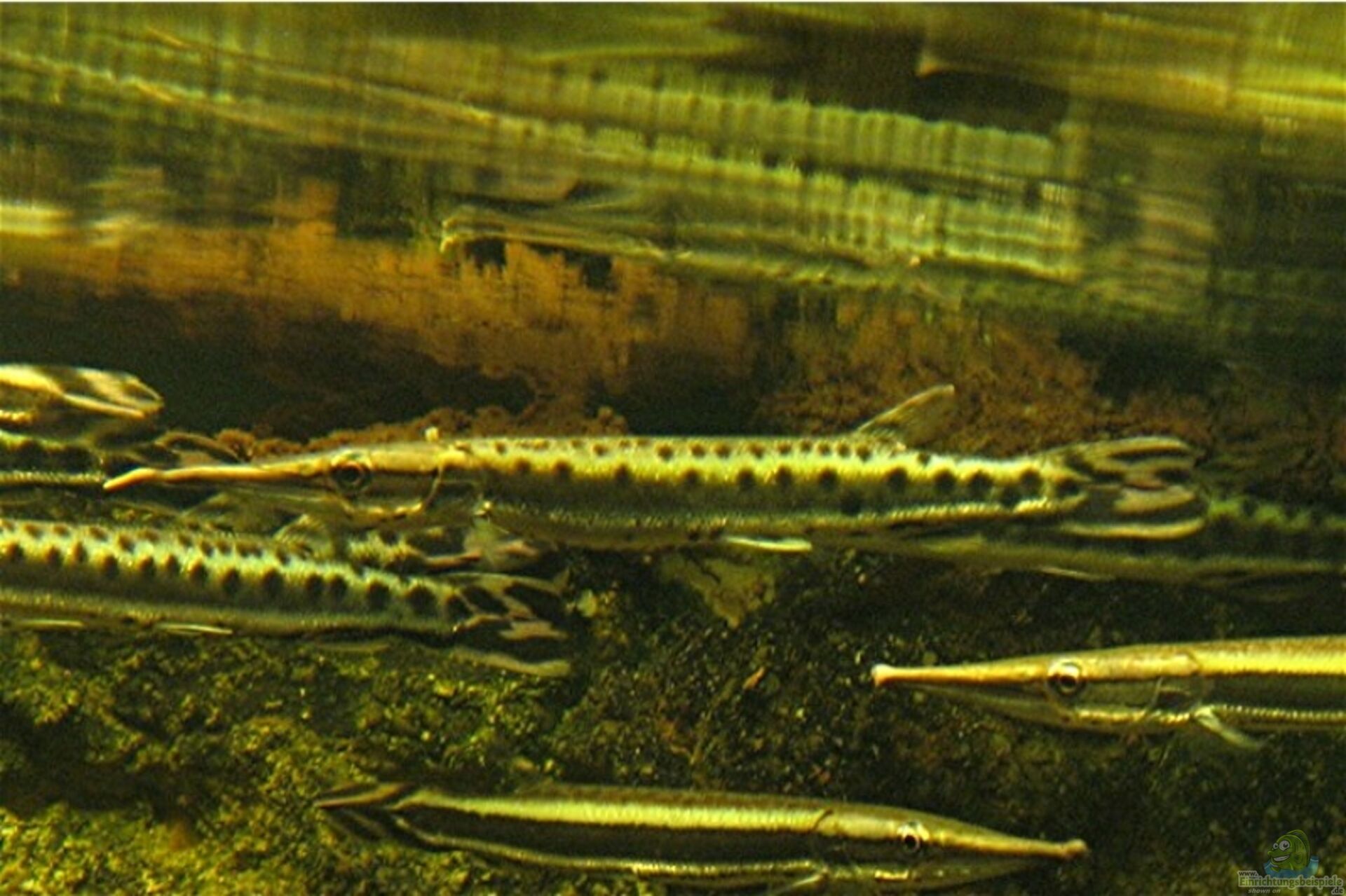 Bild 1: Eine kleine Gruppe gefleckter Hechtsalmer (oben im Bild) und Streifenhechtsalmer (unten im Bild).
