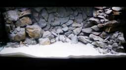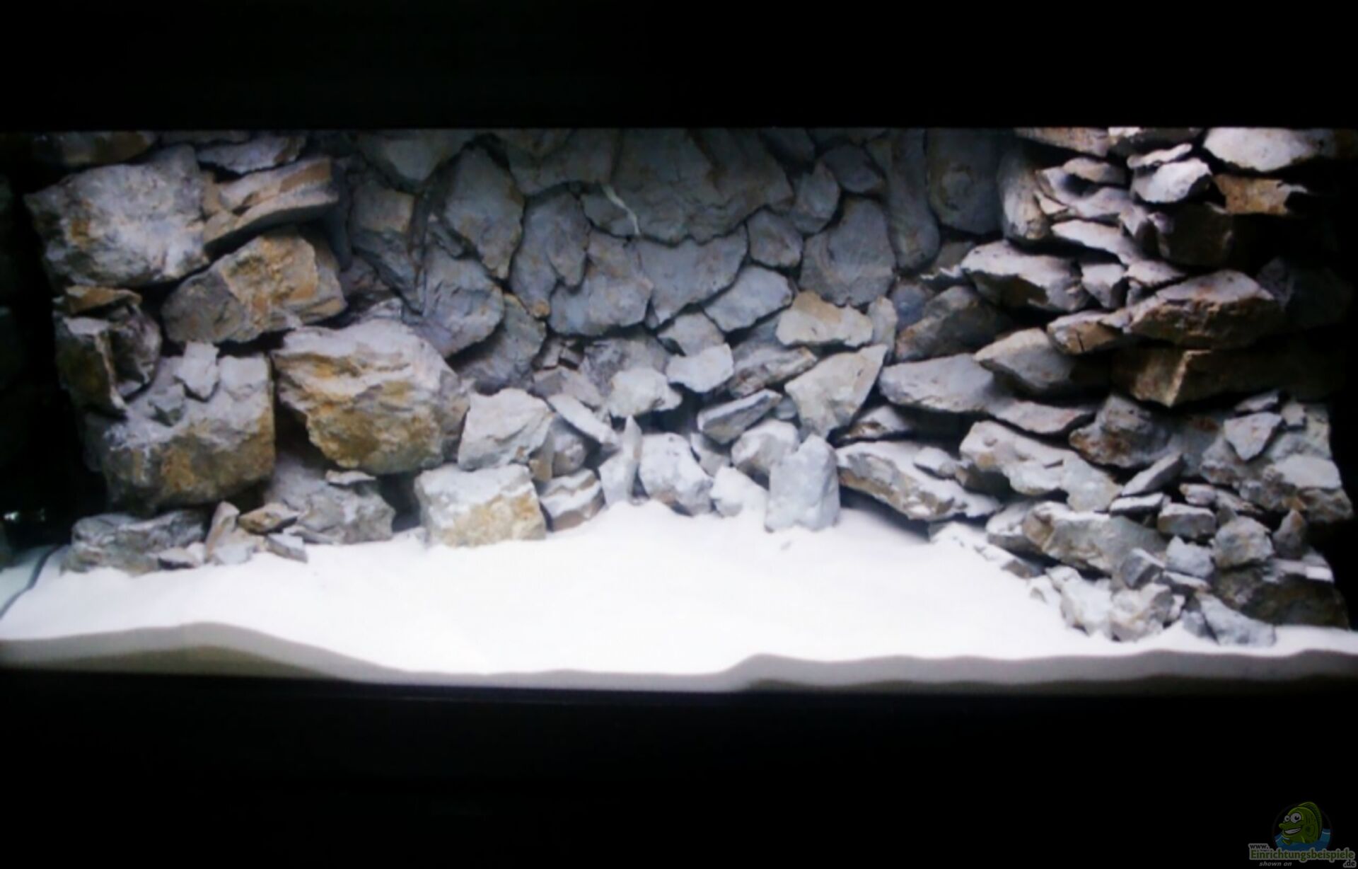 Nachdem die Rückwand nun mindestens drei Tage getrocknet ist kommt Wasser rein und eine Strömungspumpe um die Steine zu umspülen.