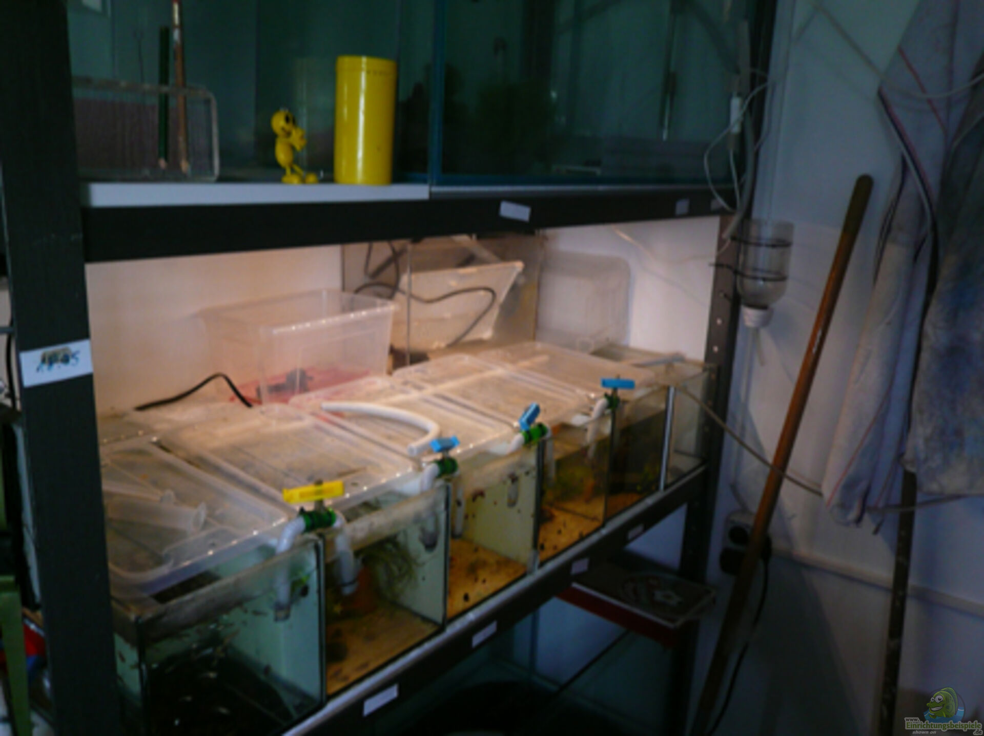 Dieser erfolgte im Grundprinzip wie oben genannt. Allerding nahm ich ??nderungen vor. So erhielten die gro??em Becken alle einen Absperrhahn und nun konnten die Abflüsse besser zum Wasserwechsel genutzt werden. Sehr zu empfehlen. Au??erdem istalllierte ich eine LED-Leiste statt der Leuchtstoffröhre.