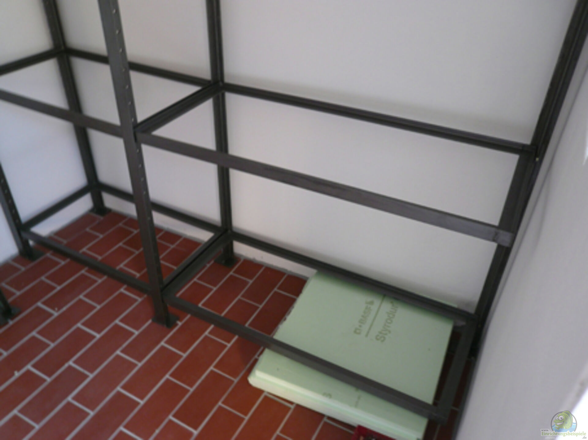 Nie wieder werde ich durchgängige Einlegeböden verwenden, jedenfalls nicht bei den gro??en Becken. Diese werde ich bei einen erneuten Aufbau höchstens auf einzelne Holzstreifen stellen, vielleicht auch nur auf den Rahmen des Regals. Wie ich es mit den Kleinen Becken machen werde wei?? ich noch nicht, ich werde mal nachdenken.