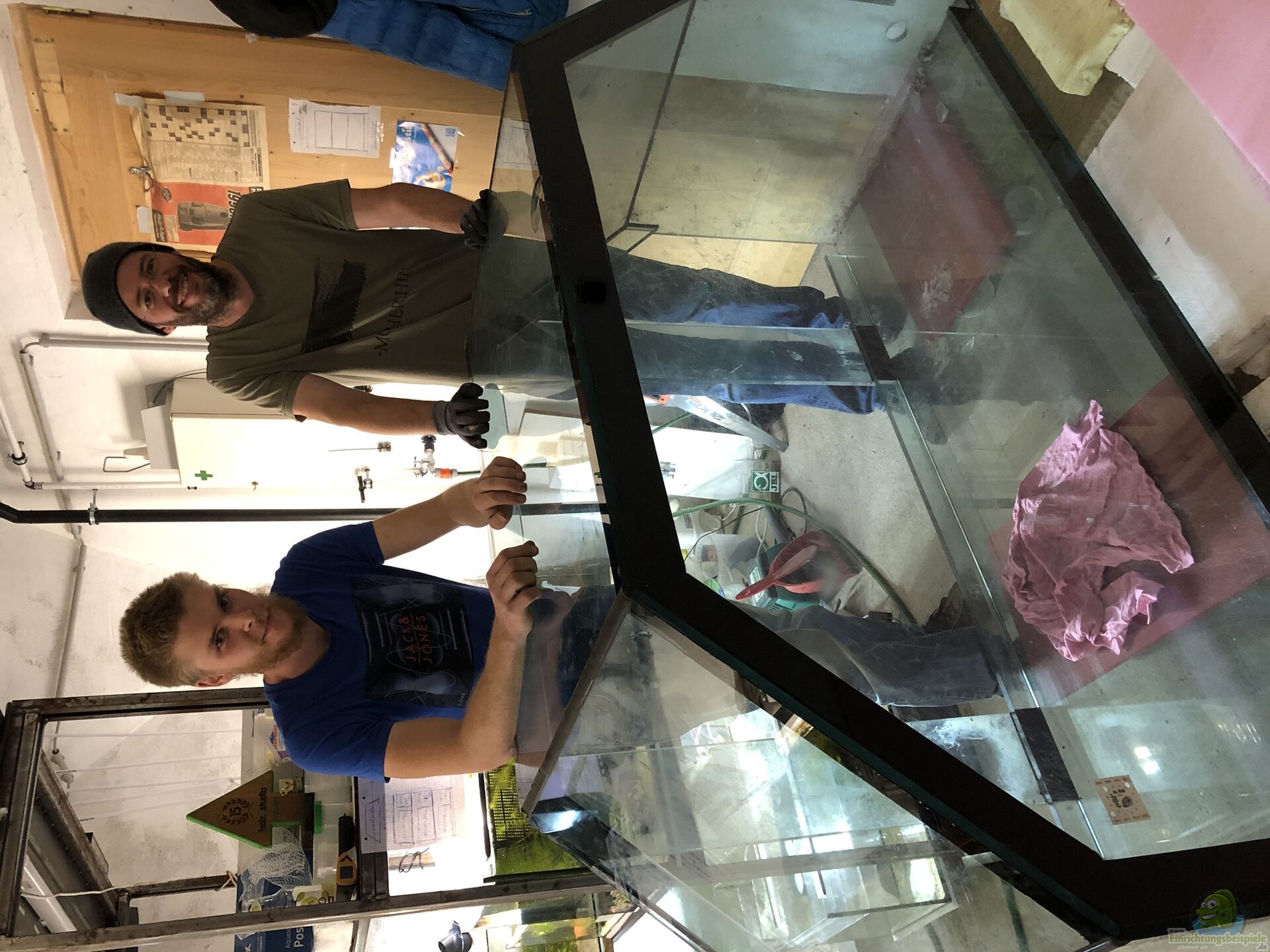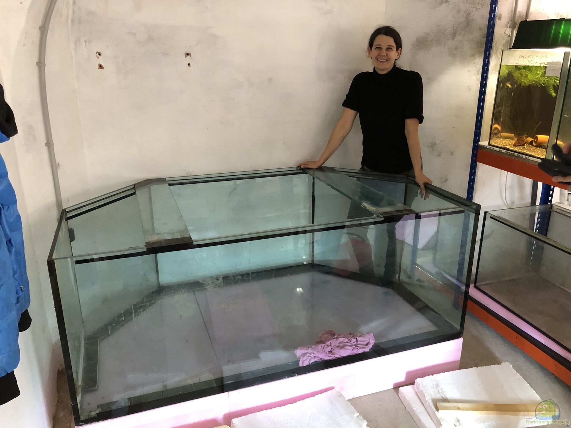 Die meisten Becken in unserem Keller ???Aquarium am Münzerturm??? fassen 50-300 Liter. Wir haben auch einige Becken mit 400-600 Liter doch darüber hatten wir eigentlich keines geplant. Wie es der Zufall so will, hatte Alois jedoch noch ein Becken mit 1.200 Liter bei sich stehen, welches er mal von jemandem erhalten hatte und das sollte nun auch im Keller aufgestellt werden.