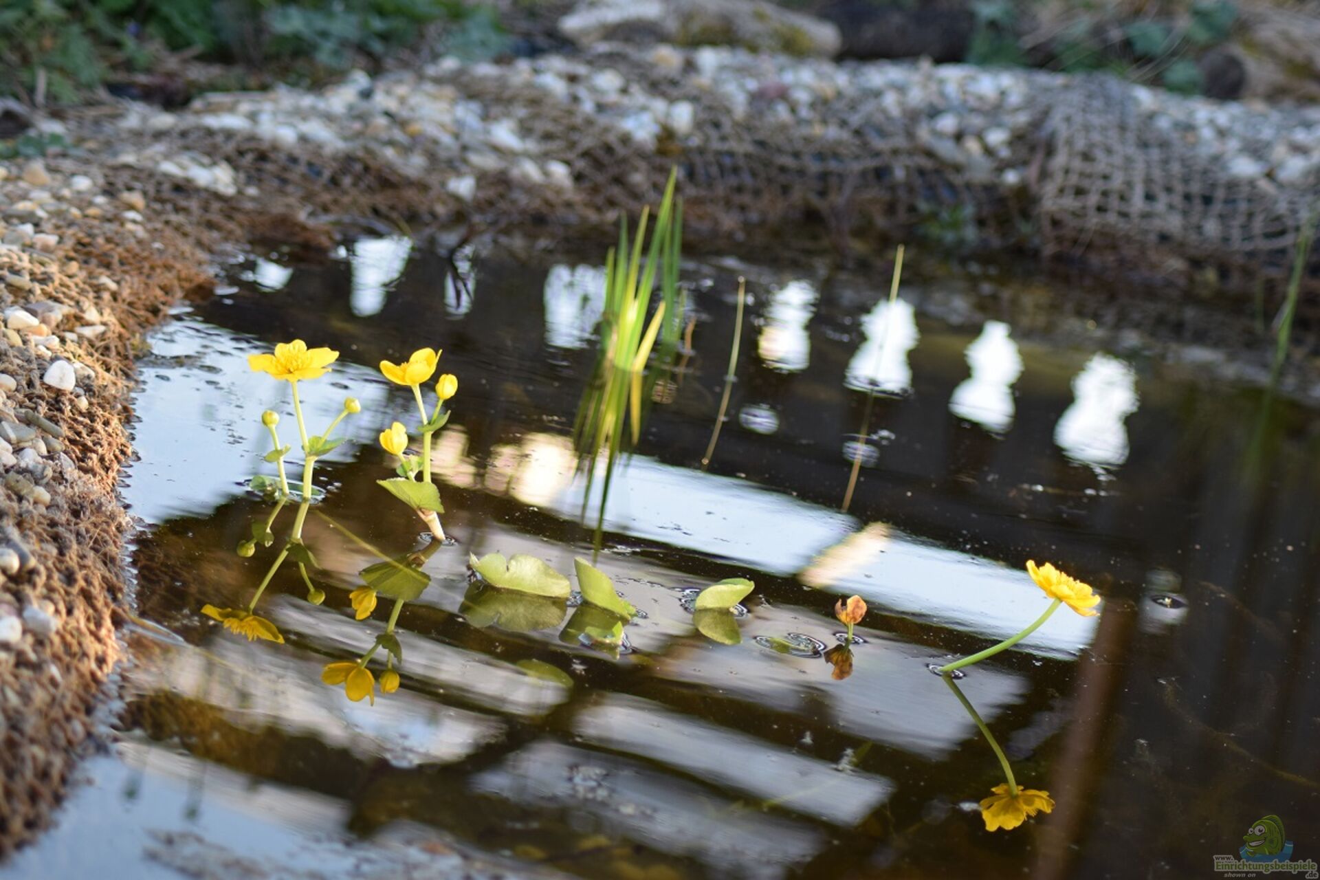 Die Schwertlilie, auch als Gelbe Schwertlilie bekannt, ist eine robuste Pflanze, die feuchte Böden liebt. Ihre auffälligen gelben Blüten erscheinen im Mai und Juni und ziehen zahlreiche Bestäuber an. Die Schwertlilie ist relativ pflegeleicht und kann sowohl am Teichrand als auch im seichten Wasser gepflanzt werden. Ihre langen, schwertförmigen Blätter bieten zudem Schutz und Rückzugsmöglichkeiten für Kleintiere.