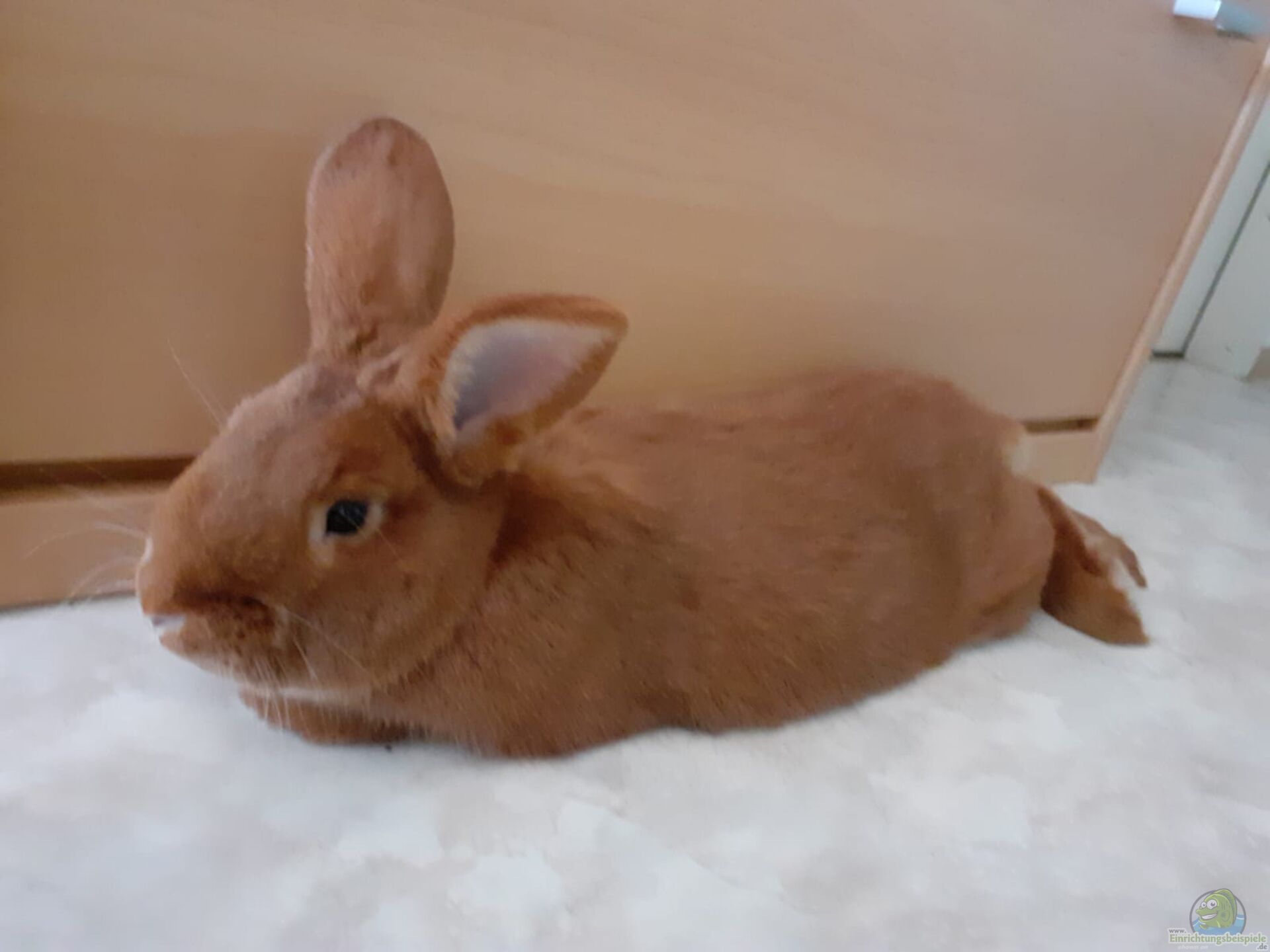 Hier sieht man ein gro??es, rotes Kaninchen... Als Kind habe ich immer von ???meinem echten Hasen vom Bauernhof??? gesprochen, als ich mit Skippy, meinem wei??-braunen Schecken an der Katzenleine spazieren ging. Mich klärte damals ein Mann auf, dass alle ???Hasen??? in Gefangenschaft eigentlich Kaninchen sind. Damals redete ich noch dagegen und meinte, dass es sich um einen ???echten Hasen vom Bauernhof??? handeln würde. Ich las es trotzdem alsbald nach und ja, es gibt gewaltige Unterschiede zwischen Kaninchen und Hasen.