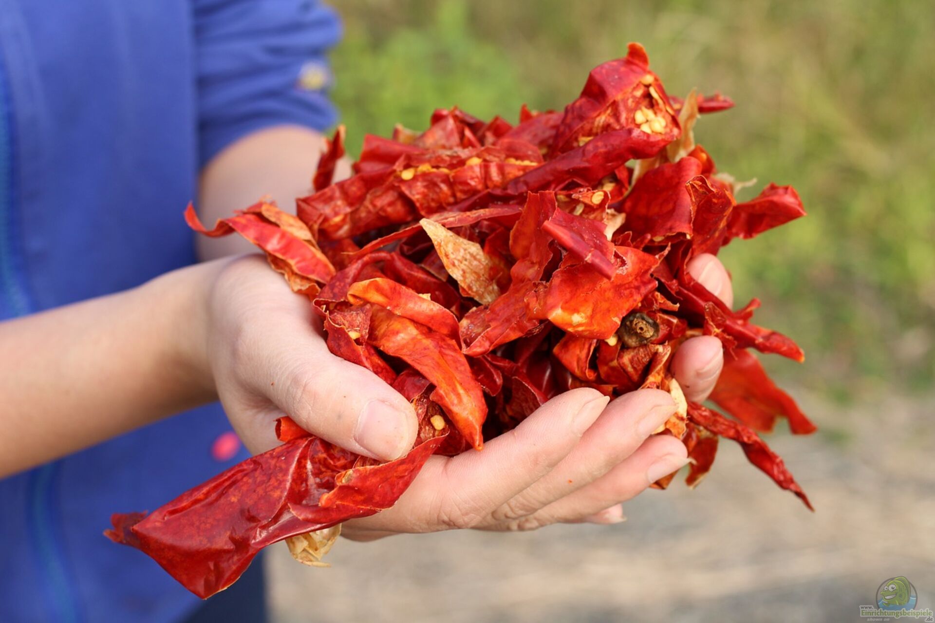 Je nach Sorte dauert es etwa 70 bis 120 Tage von der Aussaat bis zur ersten Ernte. Die Früchte sind reif, wenn sie ihre sortentypische Farbe erreicht haben. Schneide die Chilis vorsichtig mit einer Schere oder einem Messer ab, um die Pflanze nicht zu beschädigen.