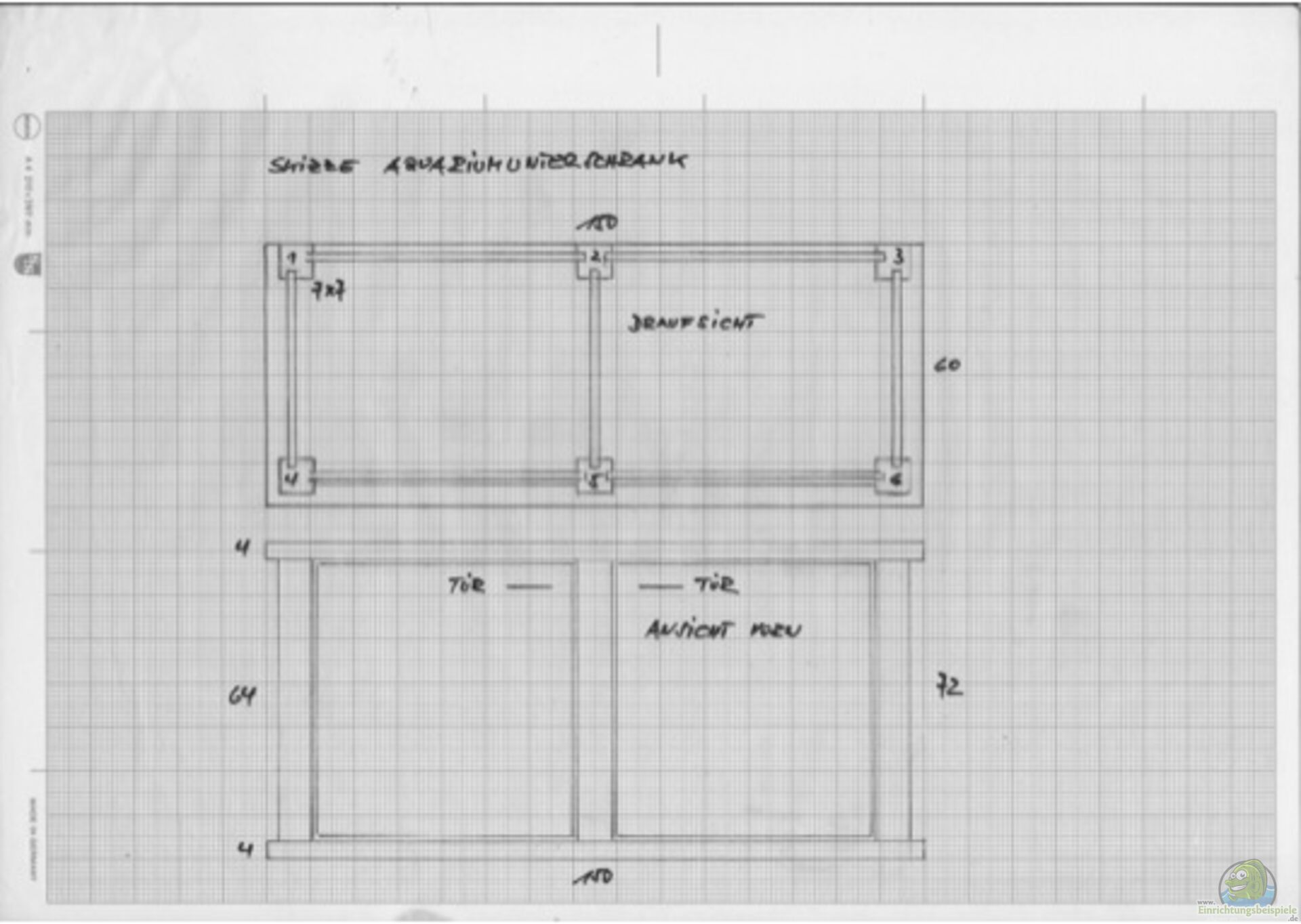 Ihr erinnert Euch vielleicht noch. Anfang des Jahres 2012 stellte ich Euch die Anfänge meines Malawi-Projektes vor. Viel Zeit, viel zu viel Zeit, ist vergangen doch jetzt geht es voran. Hier nun die Bauanleitung für den Unter-schrank meines Aquariums (150x60x60) (siehe Skizze 1):