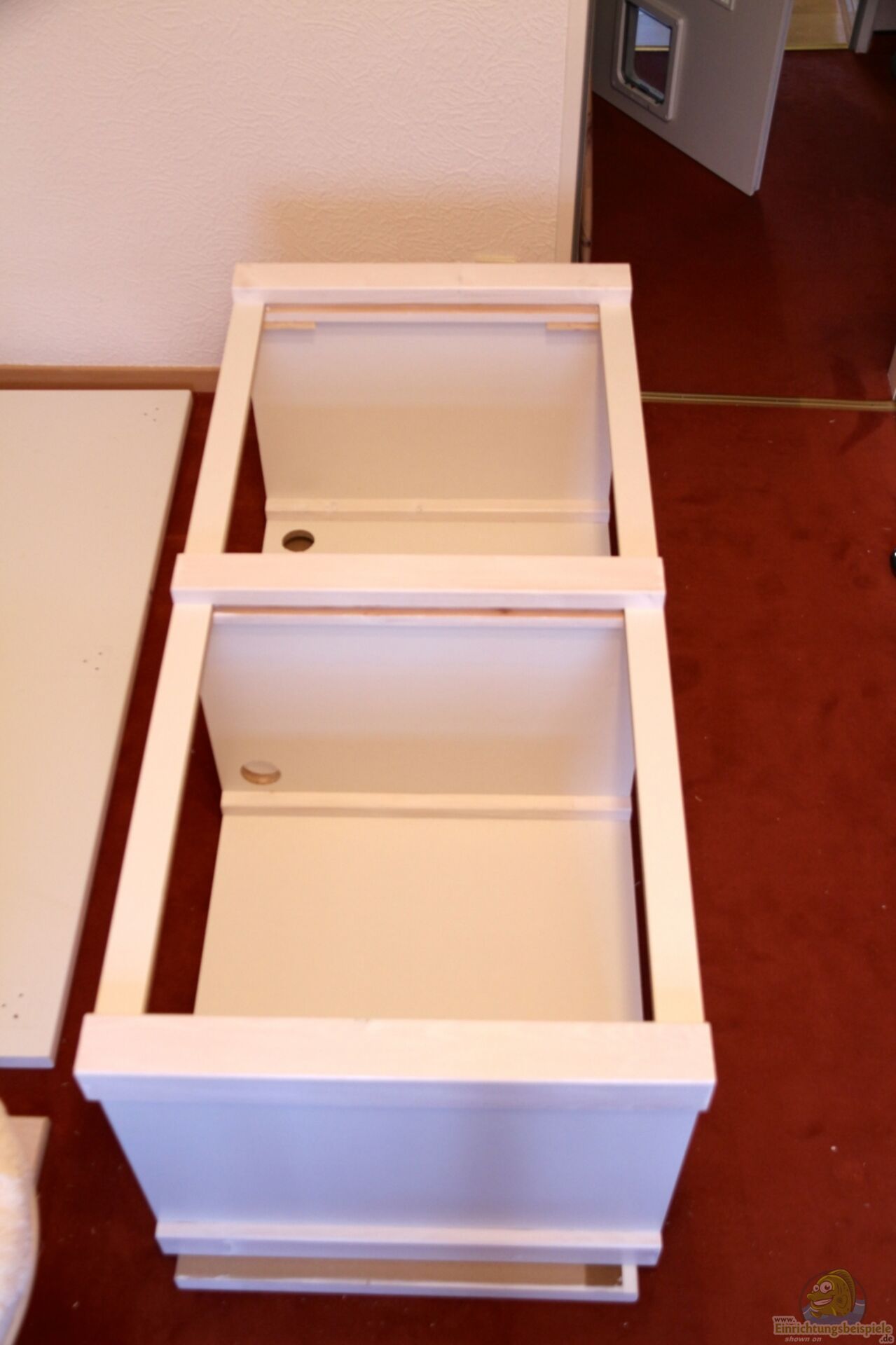 In der linken Seite des Schrankes kann ein Zwischenboden eingesetzt werden, je nach Bedarf. In die rechte Seite kommt bei mir der Fluval FX5, den ich noch in ein ca. 10cm hohes Styropor-Bett setze (Foto 11, 12).