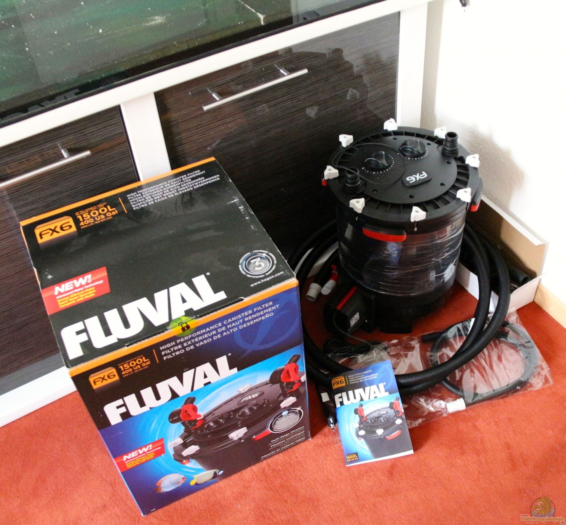 Am gleichen Tag den Fluval FX 5 Au??enfilter in Internet bei Aquatrop Shop (207, 60??? incl. Versand) bestellt und am 10. Mai kam das riesen Paket. Was für eine ??berraschung!! Die haben mir das Nachfolgermodell den Fluval FX 6 ohne zusätzliche Kosten geliefert. Folgende Neuerungen: