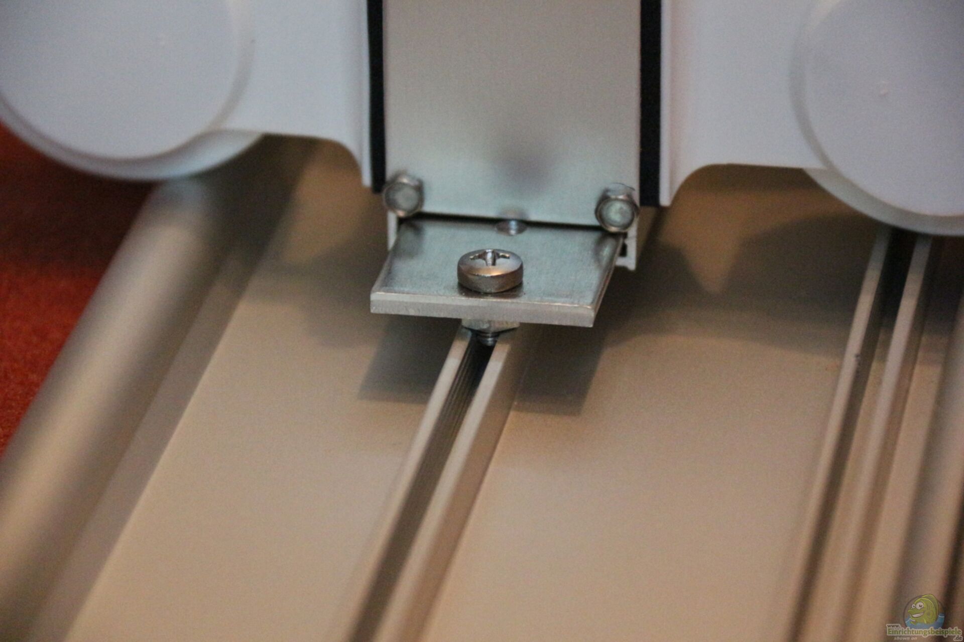 Der Zusammenbau gestaltet sich unproblematisch und geht recht zügig. Da die Schläuche des Fluval ungewöhnlich dick sind musste ich die hinteren ??ffnungen erweitern. Das erforderte einige Arbeit, sägen- bohren -feilen. Der Leuchtbalken kann an unterschiedlichen Stellen von unten an die jeweilige Lamelle geschraubt werden. Das Kabel hat eine ausreichende Länge. Die letzte, hinterste Lamelle wird mittels Madenschrauben arretiert.