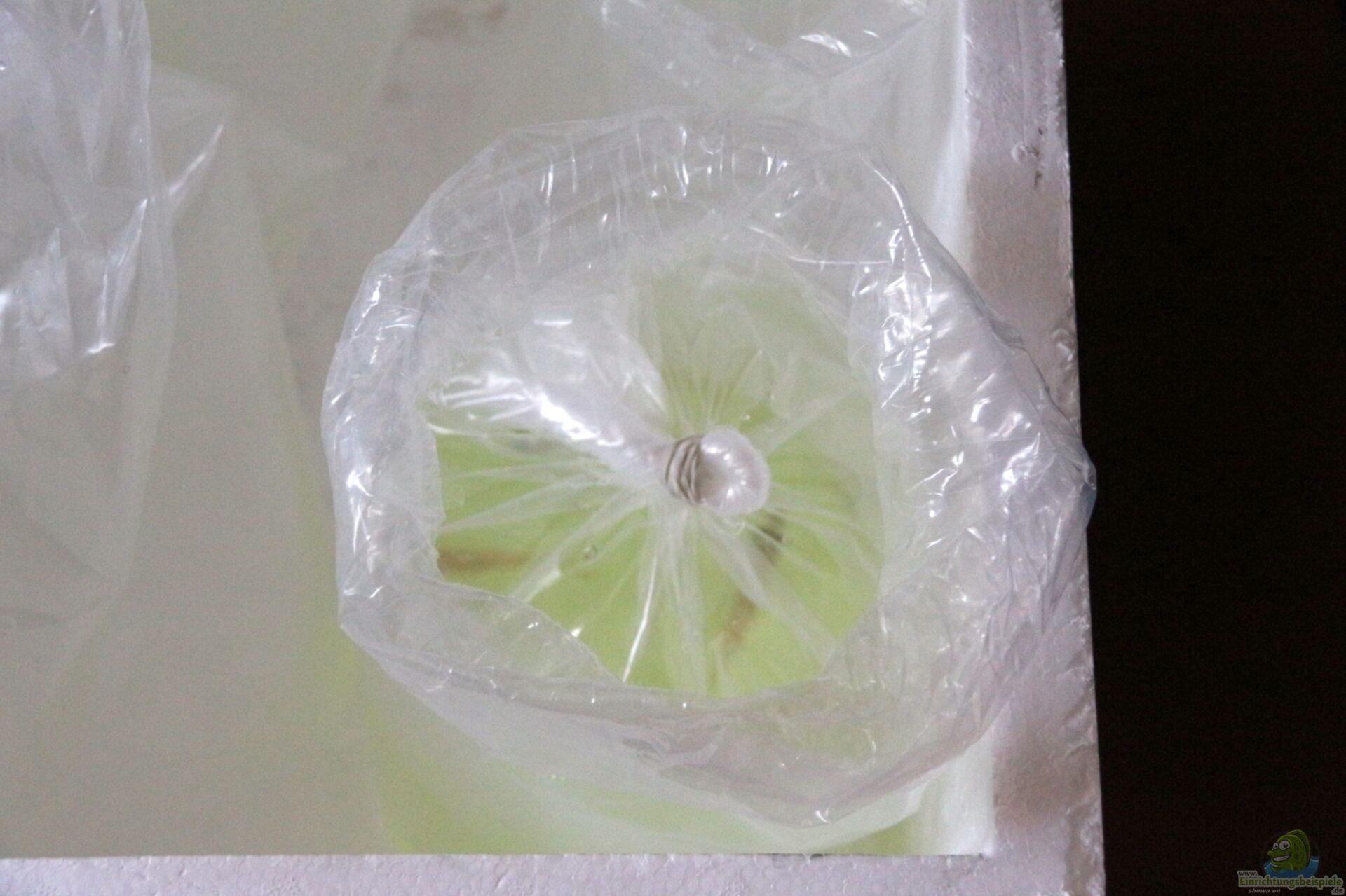 Die Styropor-Box wird vorsichtig geöffnet und erst einmal langsam Licht rangelassen. In der Zwischenzeit die Mebran-Luftpumpe incl. Sprudelstein vorbereitet und ein entsprechenden Eimer bereitgestellt.