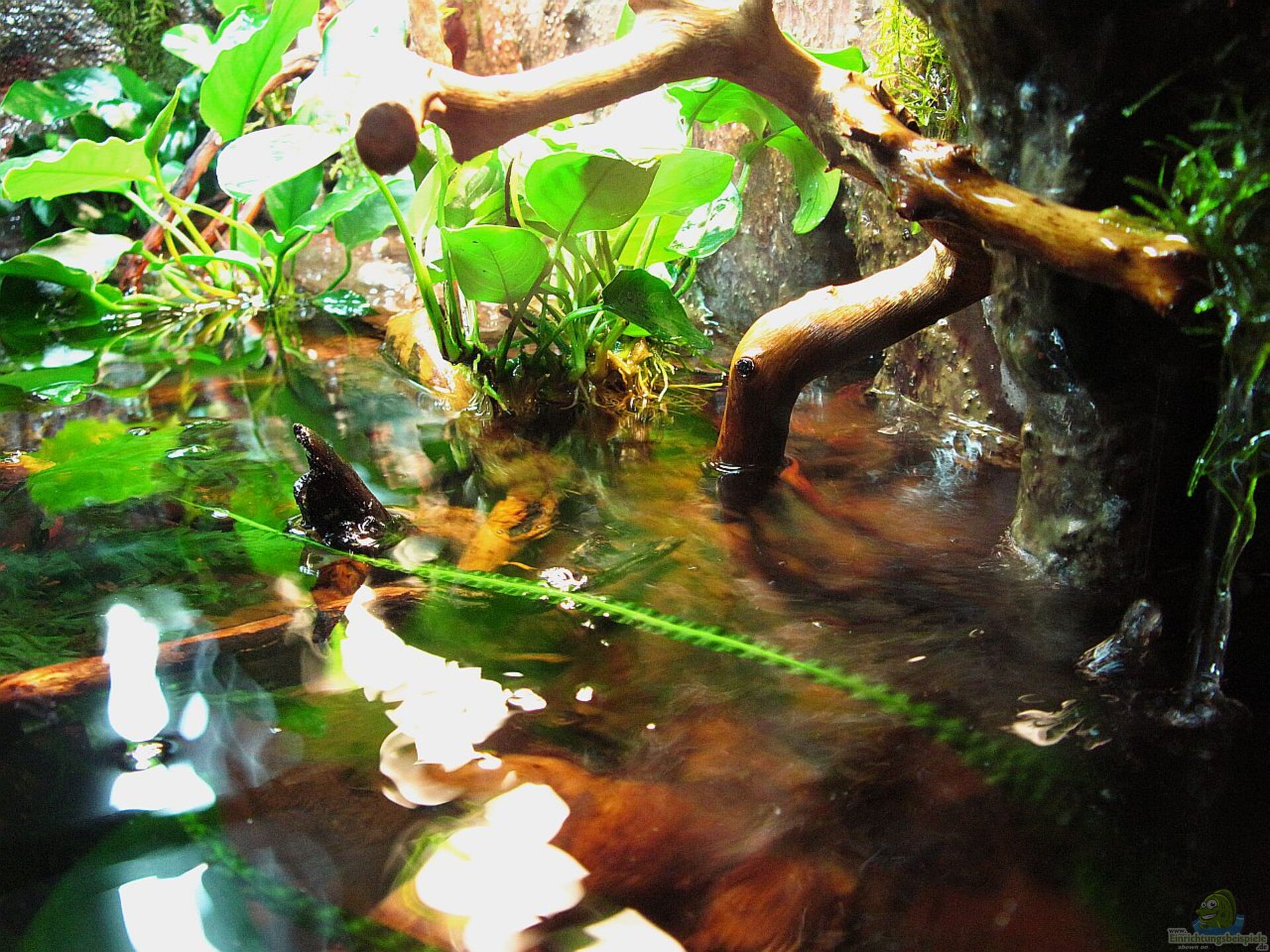 Ein Riparium kann schon in kleinen Aquarien von 54 Litern gut umgesetzt werden, wichtig ist das ein genügend gro??er Landteil der nicht dauernass sein sollte seinen Platz findet, nach oben sind hier natürlich keine Grenzen gesetzt.
