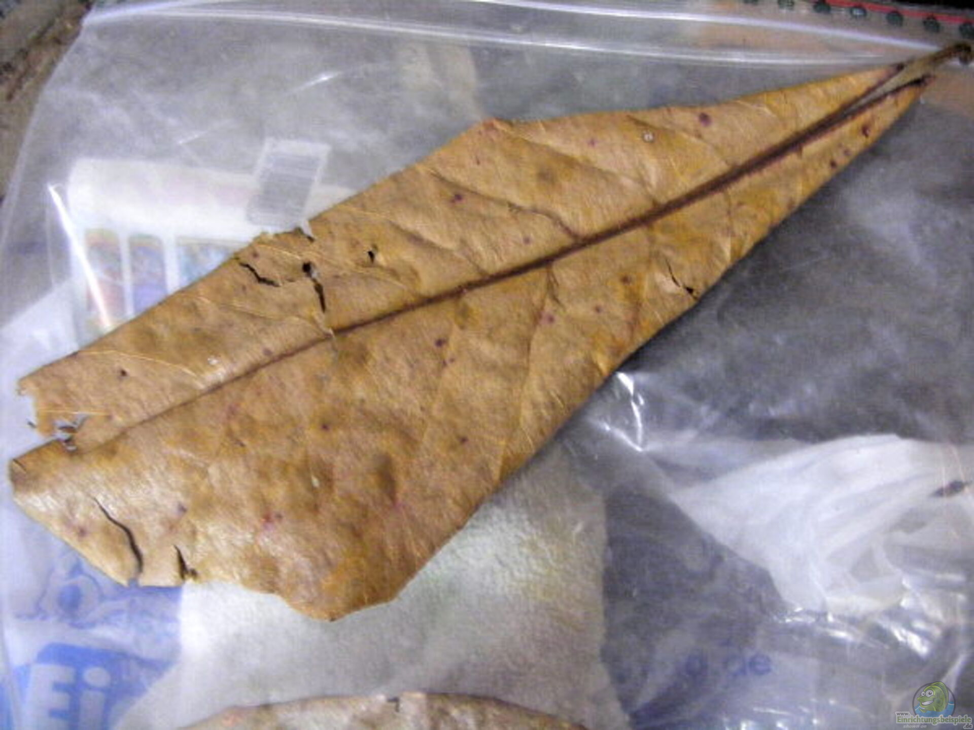 Die Blätter kommen ins Becken, dabei habe ich 4 gro??e zwanzig Zentimeter lange Blätter im 350er Becken drin und dies ist voll ausreichend. Mit der Filterung . die ich verwende halten die blätter zwischen 4-5 Wochen. In Becken aus Asien oder Südamerika, wo mehr Garnelen gehalten werden, die gern in den Blättern putzen und bei Becken mit vielleicht erhöhtem Bodenfischbesatz wird diese Zeit verkürzt. Spätestens , wenn die Blattadern zu sehen sind, mu?? das Laub aus dem Becken raus und durch neues ersetzt werden.