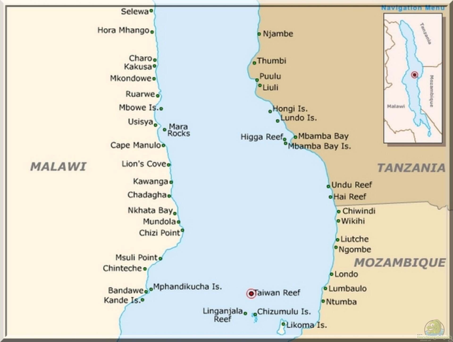 Das Taiwan Reef befindet sich ca. 7 km nord/nordwestlich vor Chizumulu Island fast in der Mitte des Malawisees und gehört zu Malawi, liegt aber im Hoheitsgewässer von Mozambique.