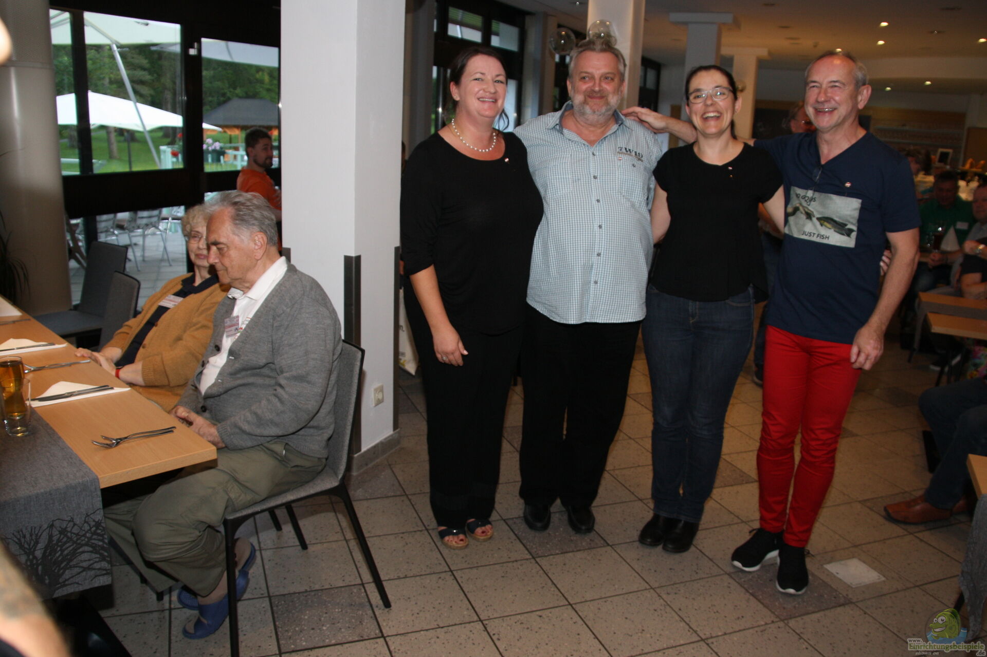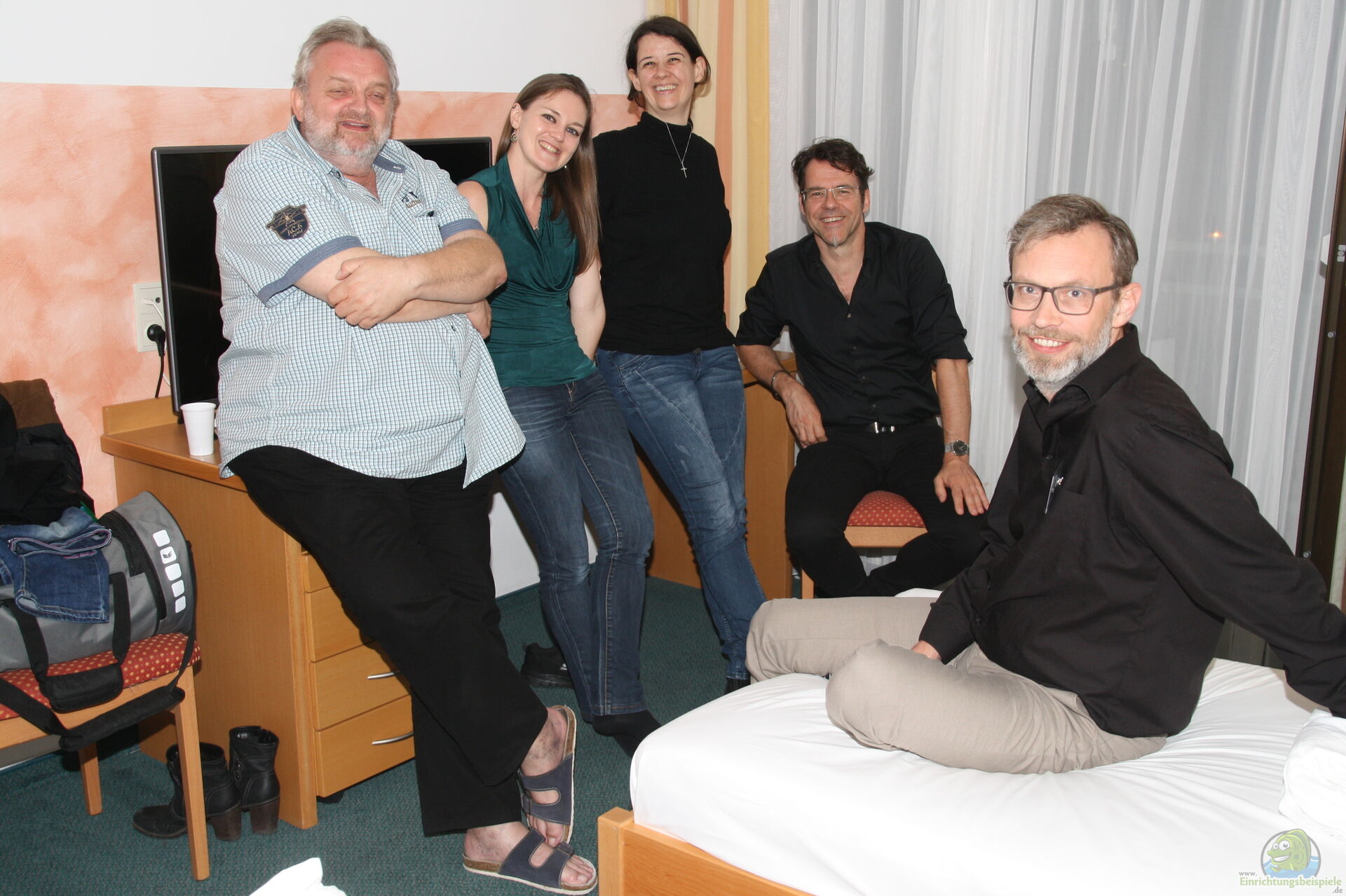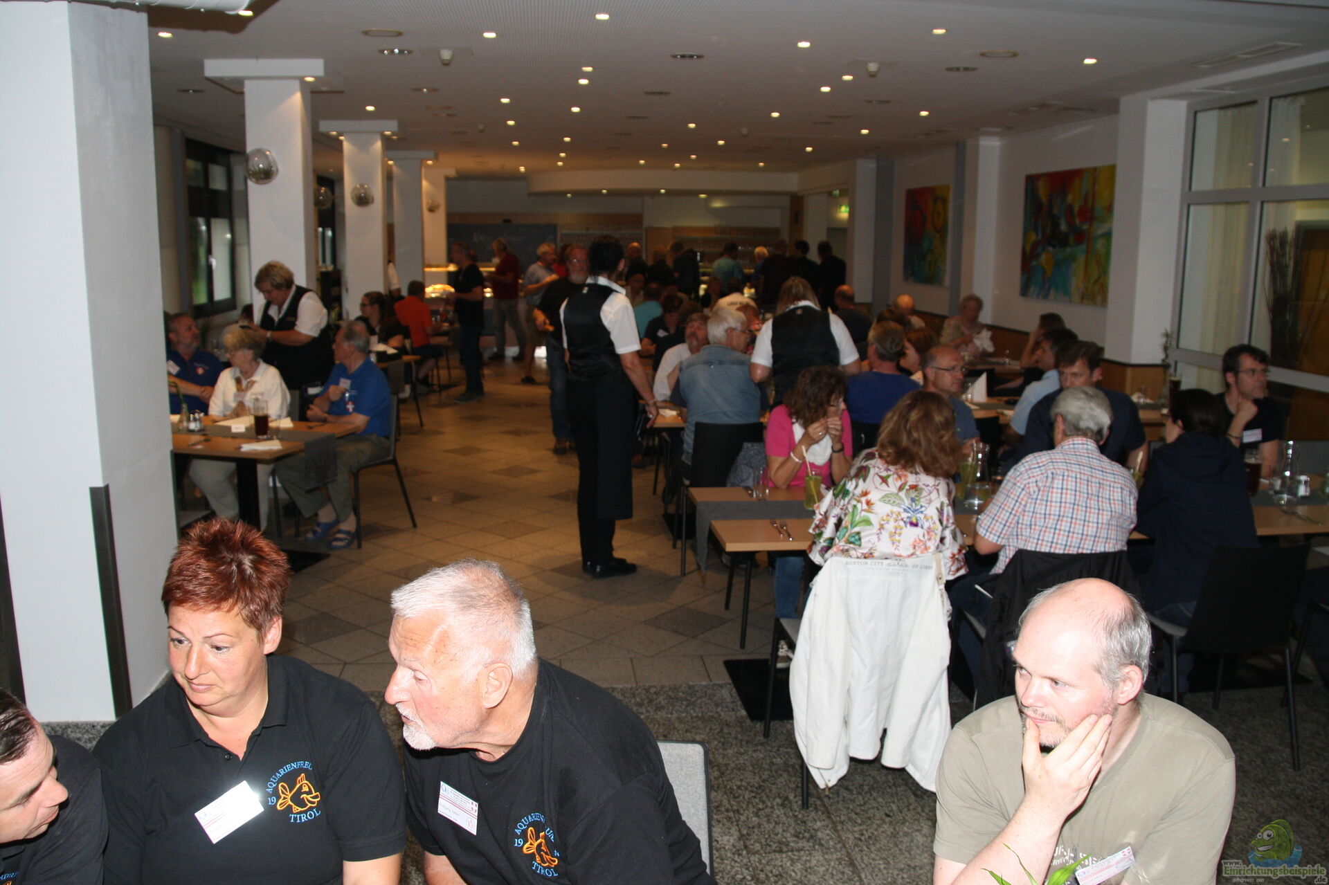 An beiden Abenden bildeten sich nach dem Essen Interessens-Gruppen. Manch einer wanderte von Tisch zu Tisch, es wurden alte Freunde begrü??t und sich zu einem kühlen Bier nach Lust und Laune über die verschiedenen Bereiche der Aquaristik und Terraristik, aber auch über viele andere Themen au??erhalb dieses Bereichs ausgetauscht. So öffnete ebenfalls das für Insider legendäre ???Zimmer 5??? seine Türen ??? diesmal jedoch unter einer anderen Zimmer-Nummer???