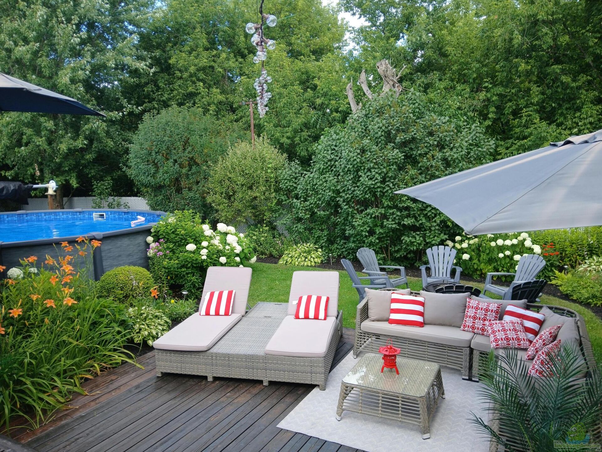 - Beleuchtung: LED-Unterwasserspots und Gartenbeleuchtung setzen den Pool auch abends perfekt in Szene.