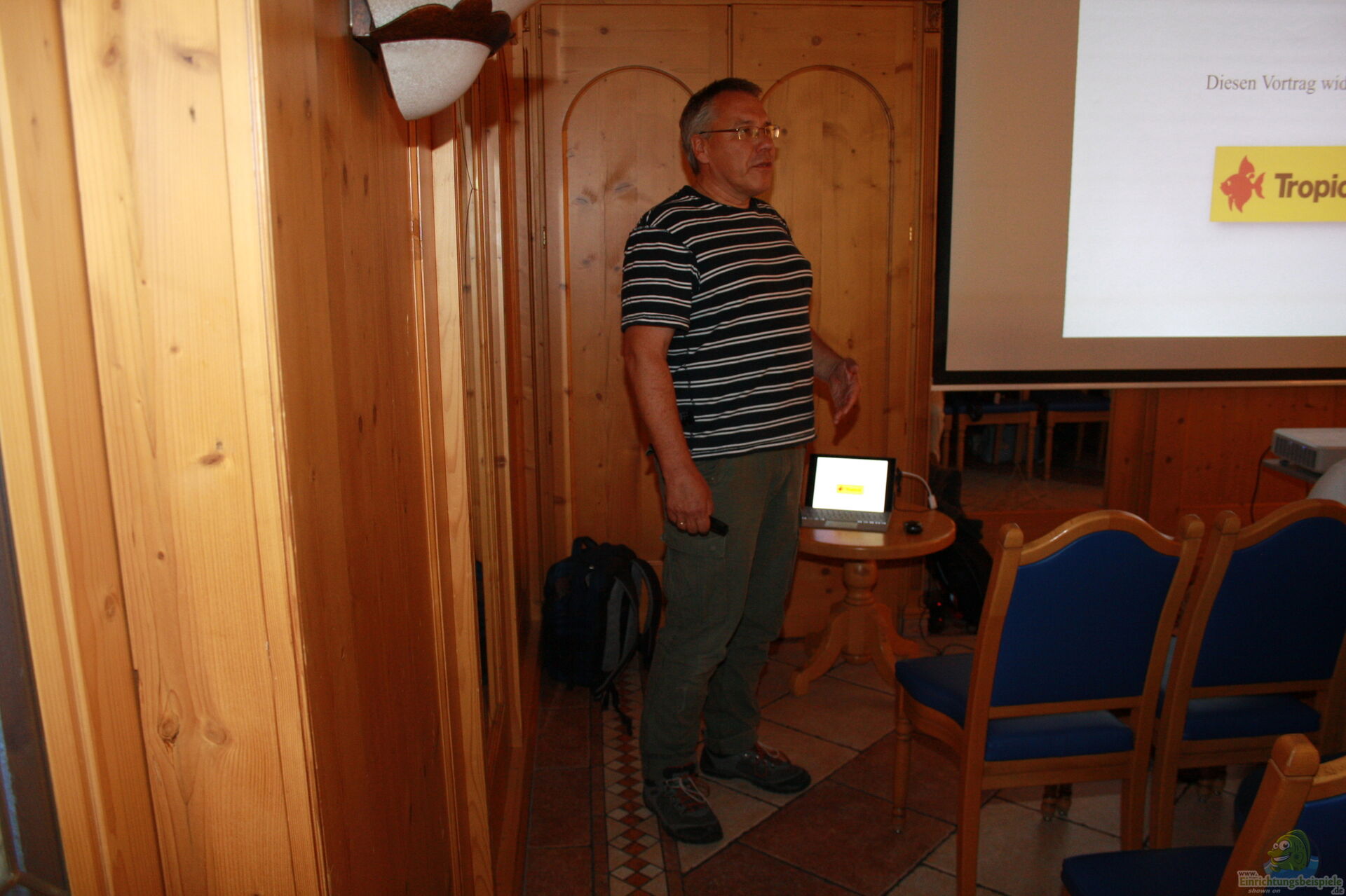Hubert Selig, ein BSSW-, sowie auch Vereinsmitglied in Tirol, erzählte uns, was passiert, ???Wenn Hubert eine Reise tut?. Bei diesen Reisen handelt es sich nicht um Fangreisen in die Heimatländer unserer Fische, sondern um solche zu befreundeten Aquarianern in Deutschland, ??sterreich und anderen Ländern in Europa. Als erstes stellte er aber seine eigene Kelleranlage vor, in der fast alles selbst gebaut wurde, weiterhin seine Futtertierzuchten. Dieser Vortragsblock war eine Powerpoint-Präsentation, unterlegt mit Musik. Dann kam er zu seinen Reisen, als erste die zu Hans- Georg Evers nach Hamburg. Weiter wurden Michael Schlüter, Peter Schmiedel, Robert Budrovcan und Erik Schiller besucht und auch zu einem Thomas, einem Andreas und einem Torsten gingen Huberts Besuche. ??berall wurden die Anlagen und Fische vorgestellt und für einige Zuhörer im Saal waren alte Bekannte dabei.