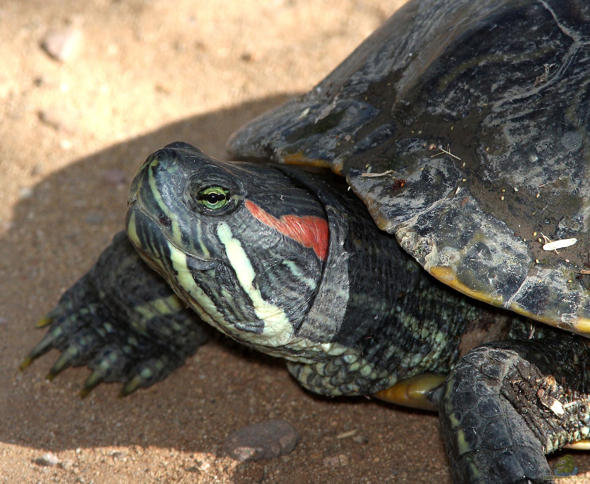 Der grüne Leguan (Iguana iguana) ist eine größere Reptilienart, die in Terrarien gehalten wird. Diese Tiere können bis zu 2 m lang werden und benötigen daher viel Platz. Grüne Leguane benötigen spezielle Beleuchtung und Ernährung, um gesund zu bleiben. Sie sind tagaktiv und werden oft wegen ihrer beeindruckenden Größe und ihres einzigartigen Aussehens geschätzt. - Wasserschildkröte