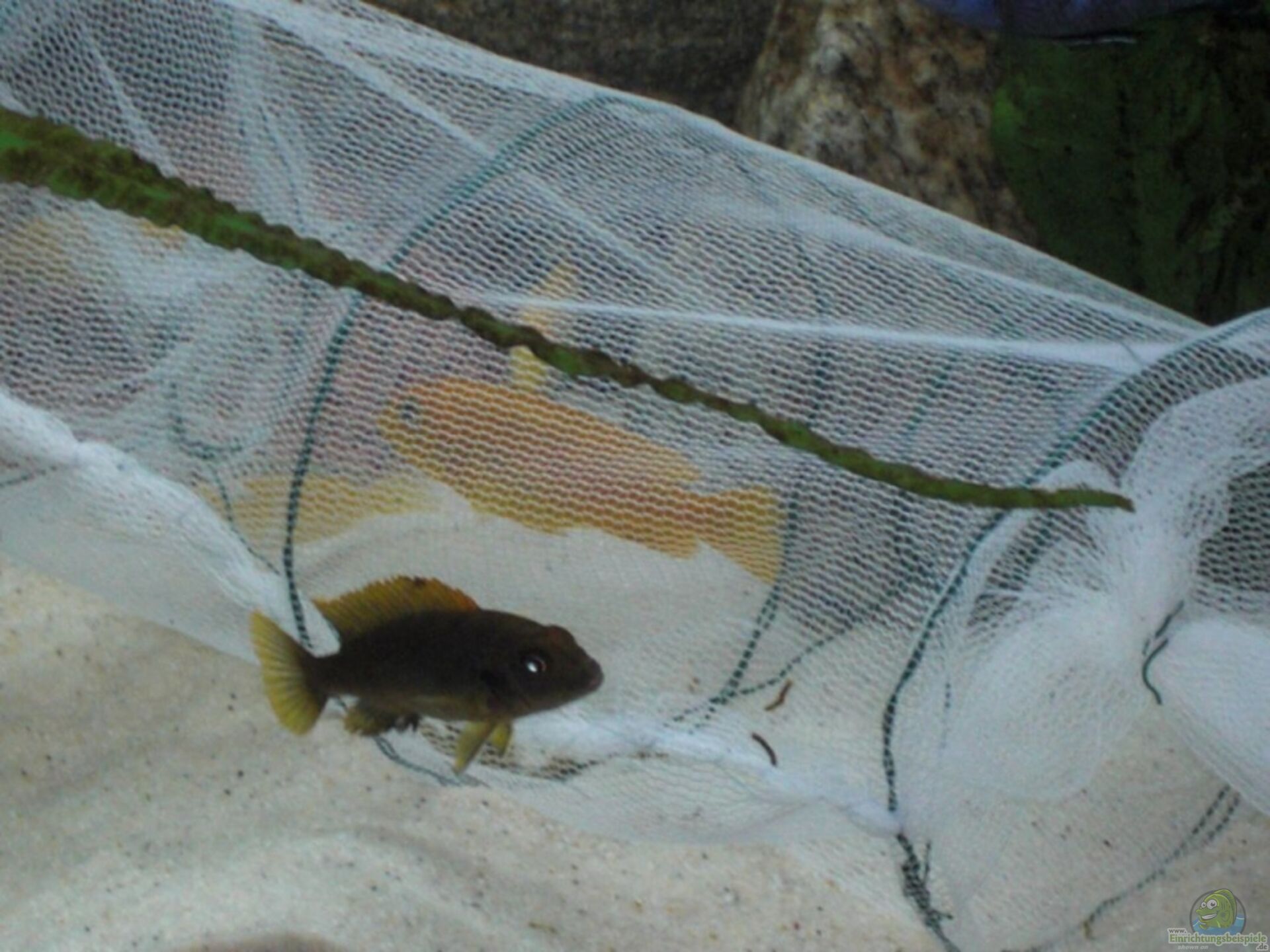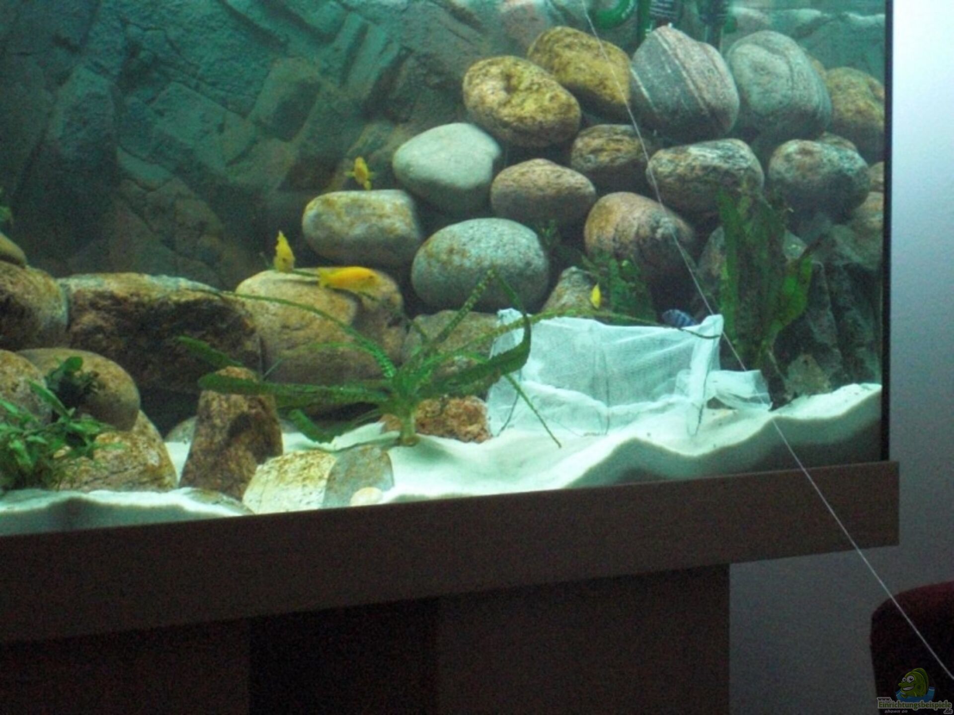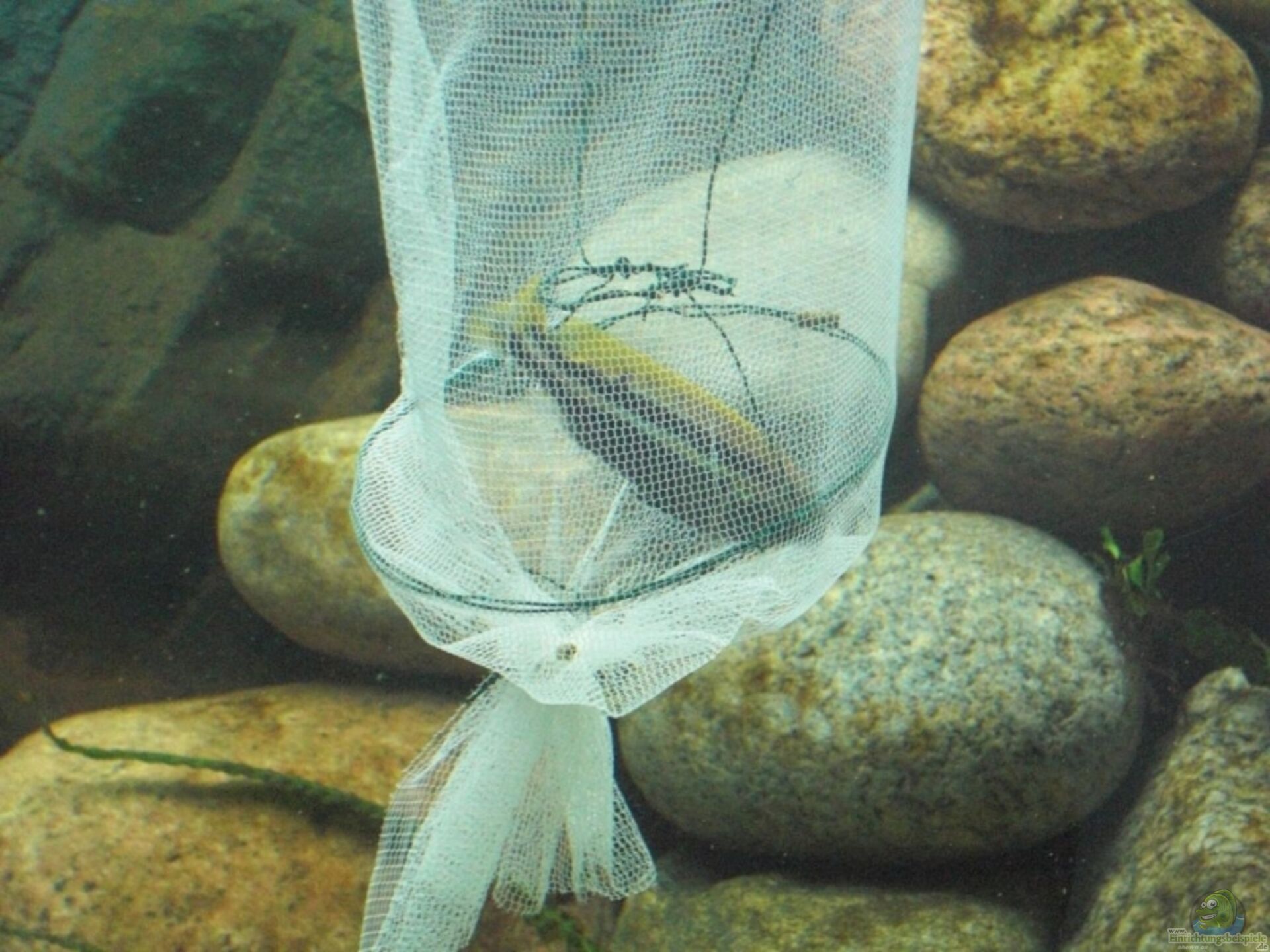 nun platziere man die Falle am Aquariumboden an strategisch richtiger Stelle, so das man beim heraufziehen die Einrichtung nicht beschädigt,