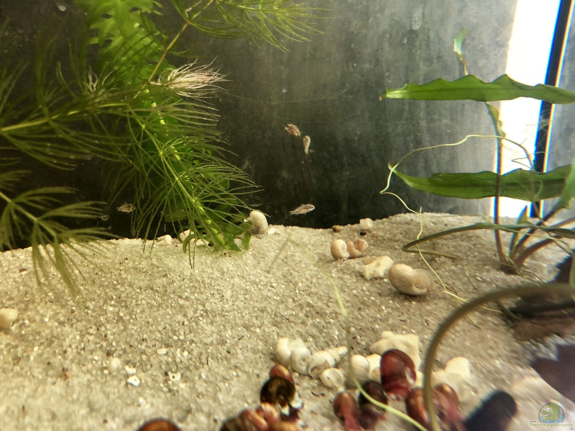 Ich fütterte weiterhin zweimal täglich mit jeweils zwei Viertel einer Sera viformo Futtertablette und hin und wieder sah ich ein einzelnes Jungtier im Becken. Es vergingen zwei Wochen???