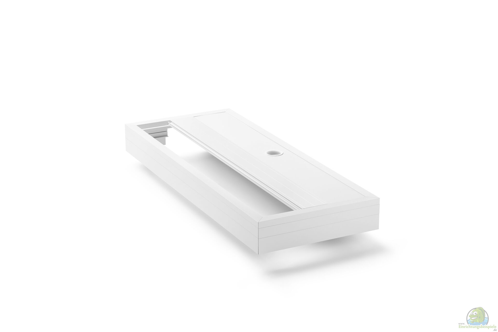 Die Auswahl. Flexibel. Variantenreich. Weit mehr als 2000 mögliche Kombinationen machen diese Abdeckung für quadratische und rechteckige Aquarien von 30x30 bis 300x100cm zur ersten Wahl. Je nach Auswahl ist der Technikausschnitt (für Kabel, Schläuche, etc.) an Längsseite (Standard) oder Breitseite (Raumteiler), bzw. auch komplett ohne (Technikschacht innen) möglich.