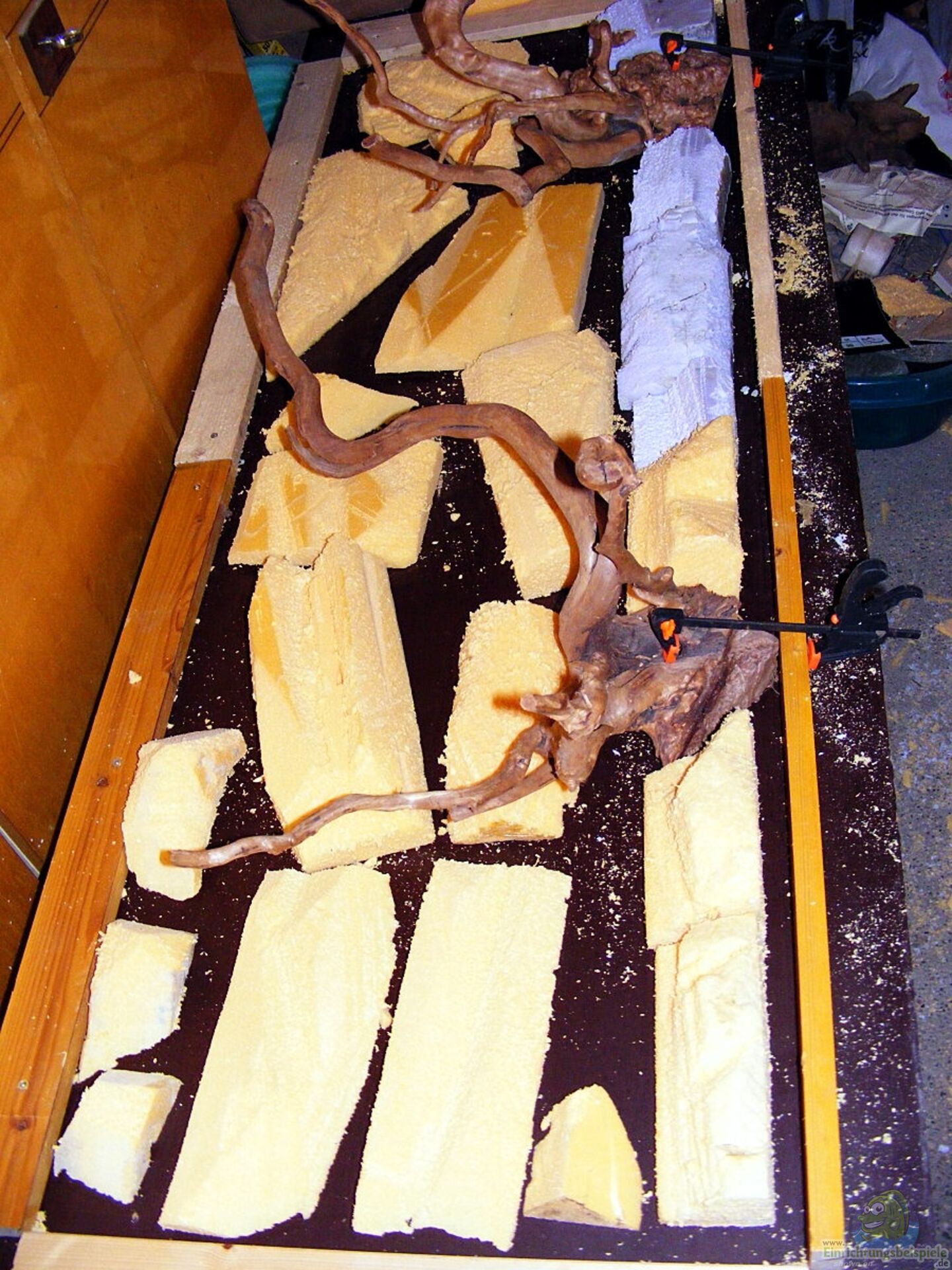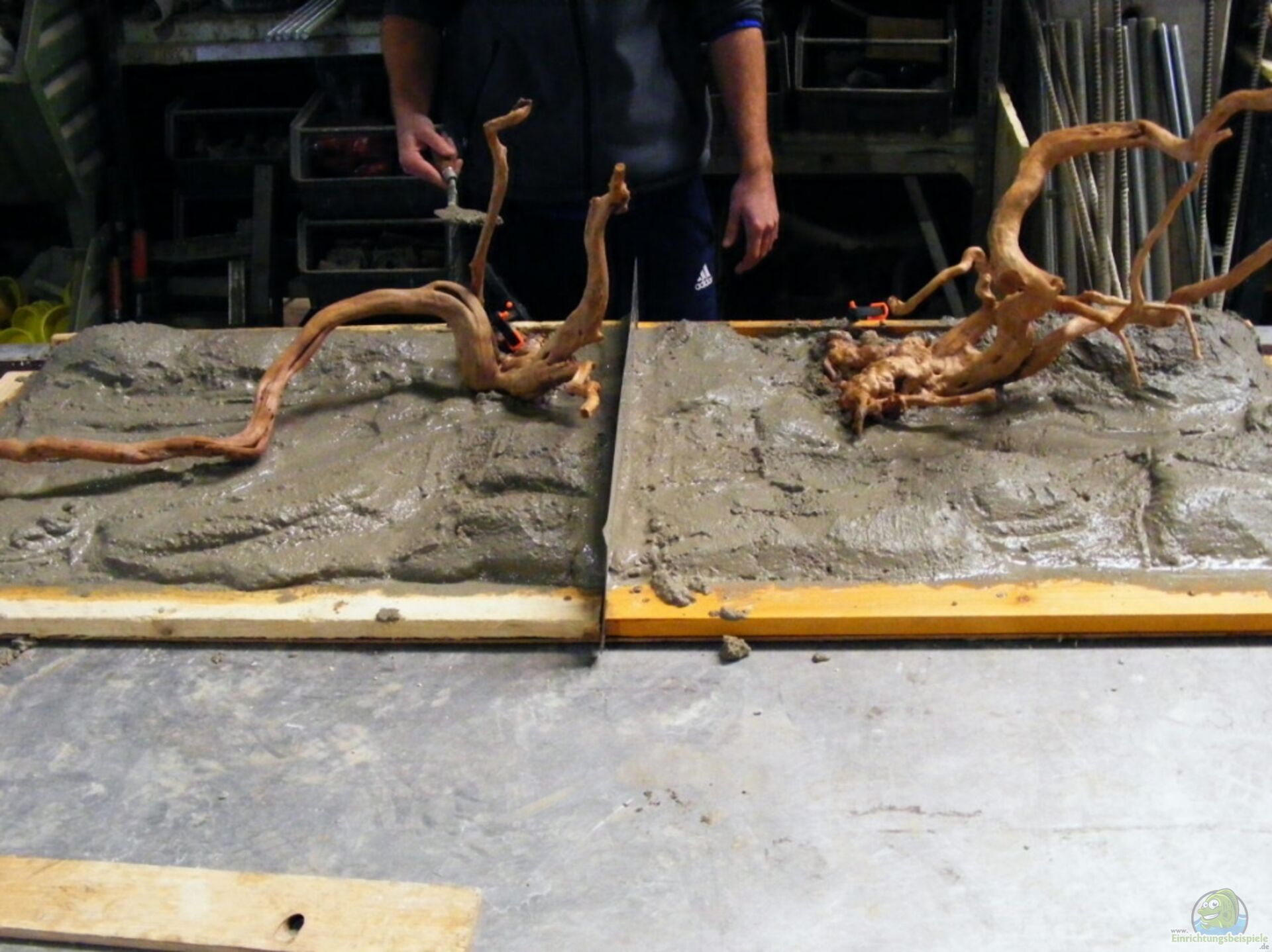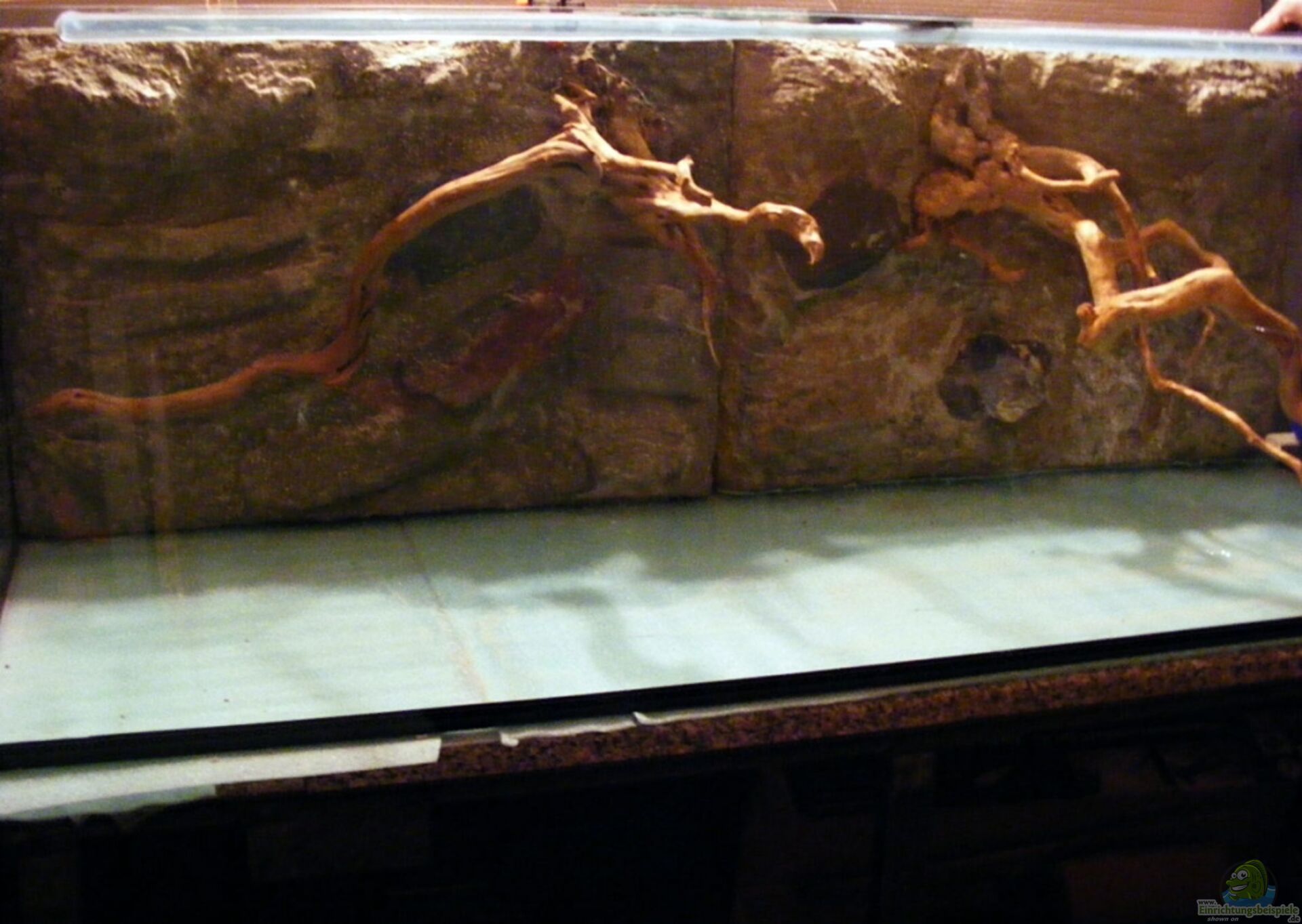 Endlich kann ich weiter...die Rückwand wird noch fertig geklebt im Becken..das Endergebnis ohne Wasser siehe Bild 11( etwas mit Spiegelung , aber es kommen noch mehr...