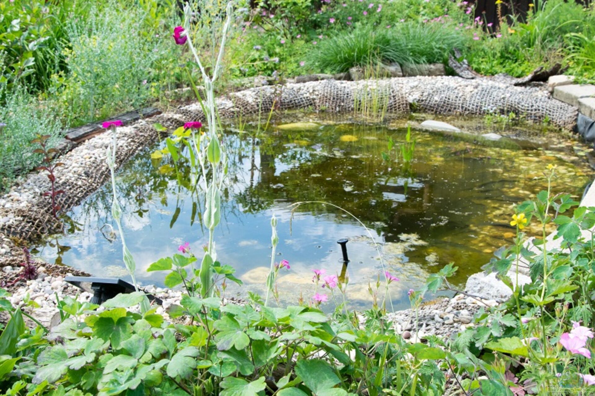 Die Uferzone bildet den Randbereich des Teichs und geht nahtlos in den Garten über. Hier finden sich sowohl feuchte als auch trockene Standorte, je nach Wasserstand und Beschaffenheit.