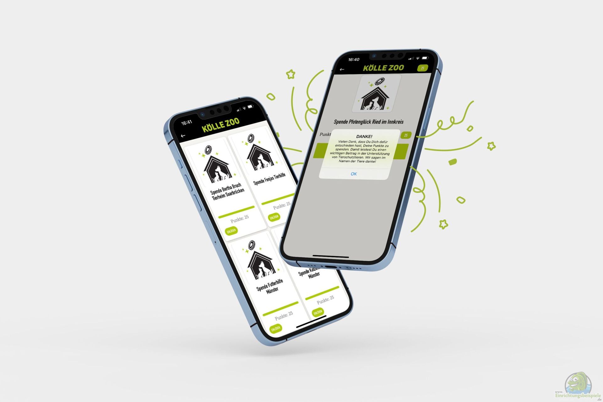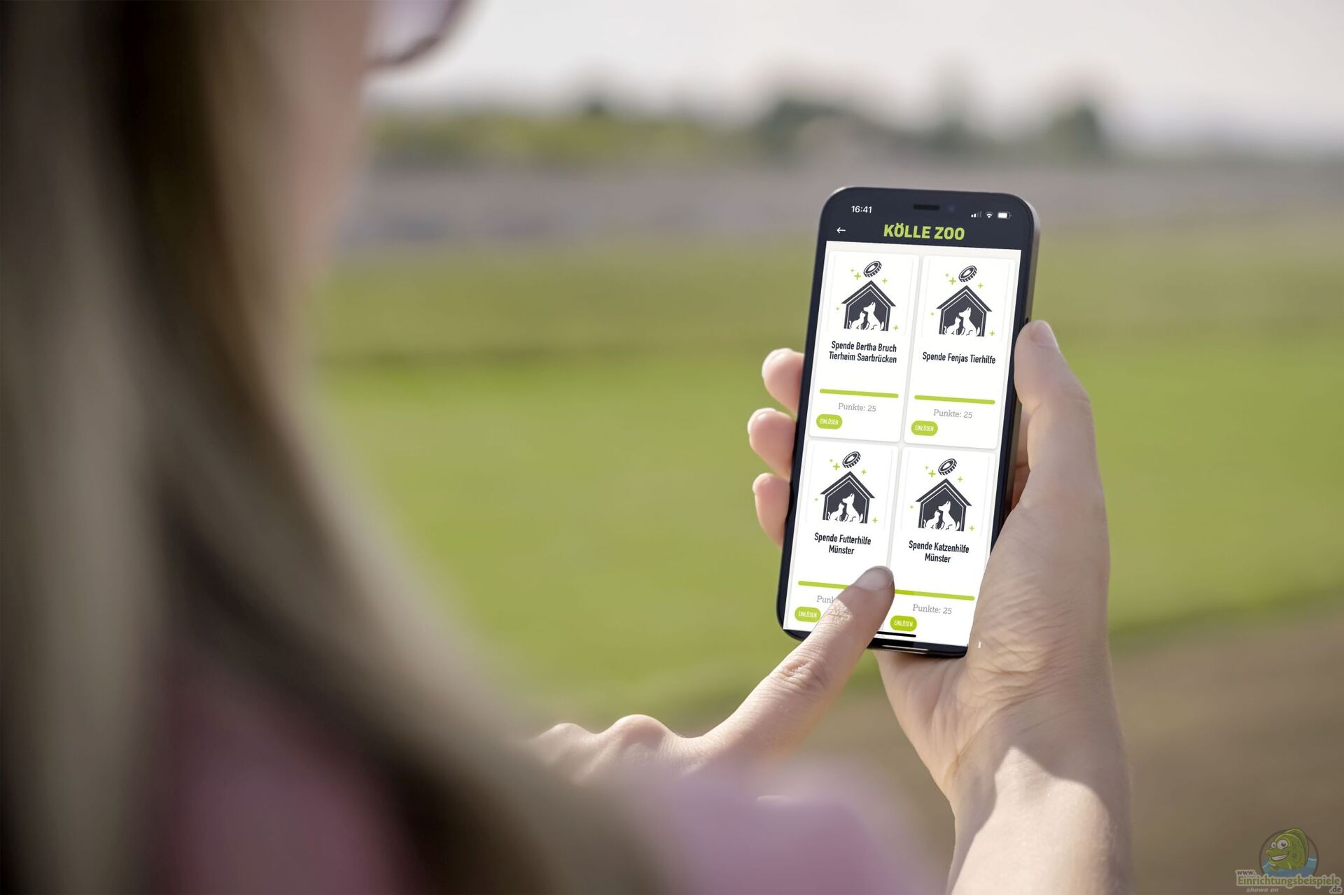 Seit Mai 2024 ergänzt die Kölle Zoo App das stationäre Einkaufserlebnis um ein digitales Bonusprogramm, das gezielt auf Kundenbindung und Mehrwert setzt. Kund:innen sammeln bei jedem Kölle Zoo-Einkauf Punkte – pro 1 Euro Einkaufswert gibt es einen Punkt. Die gesammelten Punkte können wahlweise gegen Prämien eingelöst oder direkt an ausgewählte Tierschutzorganisationen und -projekte gespendet werden. Dabei gilt: 25 Punkte entsprechen 1 Euro Spende, aus 500 Punkten wird eine Unterstützung in Höhe von 20 Euro.