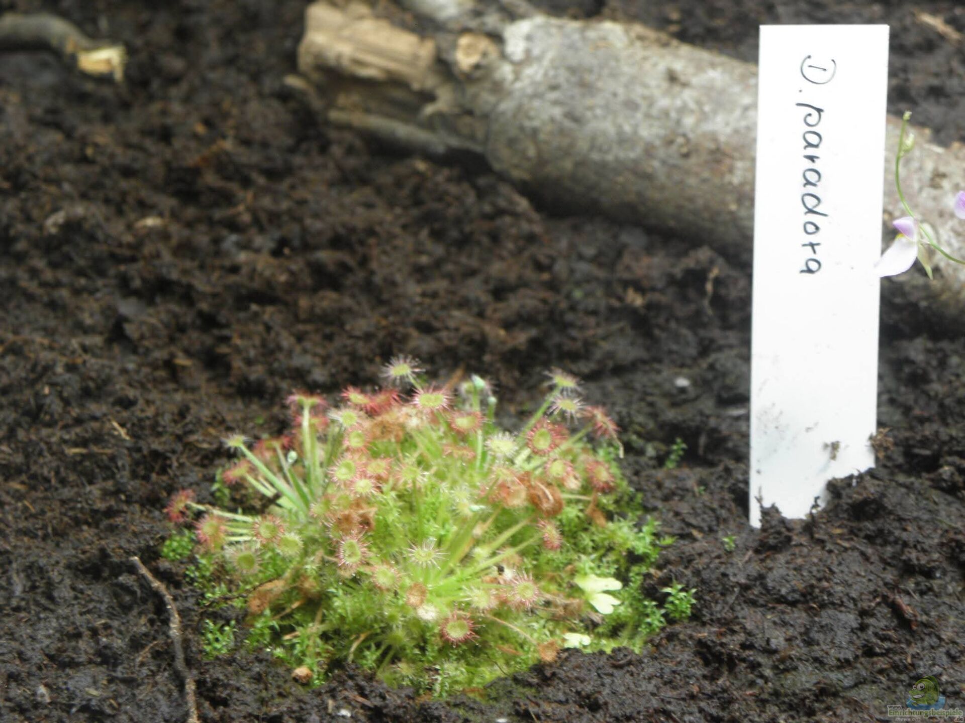 Im Sommer sind Temperaturen zwischen 20°C und 30°C ideal, im Winter können die Temperaturen auf 10°C bis 20°C abfallen. Im Sommer kann diese Pflanze auch ins Freie verbracht werden, solange die Temperaturen nicht unter 5°C fallen. Ein halbschattiger Platz ohne direkte Sonne ist dann allerdings ratsam, um Blattschäden an der Pflanze zu vermeiden. Im Winter sollte die Pflanze hell und kühl stehen, idealerweise bei Temperaturen zwischen 5°C und 12°C. Drosera paradoxa sollte stets feucht gehalten werden, jedoch nicht zu nass. Eine sogenannte Anstaubewässerung ist allerdings nicht unbedingt notwendig. Gegossen wird diese Pflanze mit Regenwasser oder destilliertem Wasser. Diese Pflanze kann auch im Karnivoren Terrarium oder in der Karnivoren Vase sehr gut gepflegt werden.
