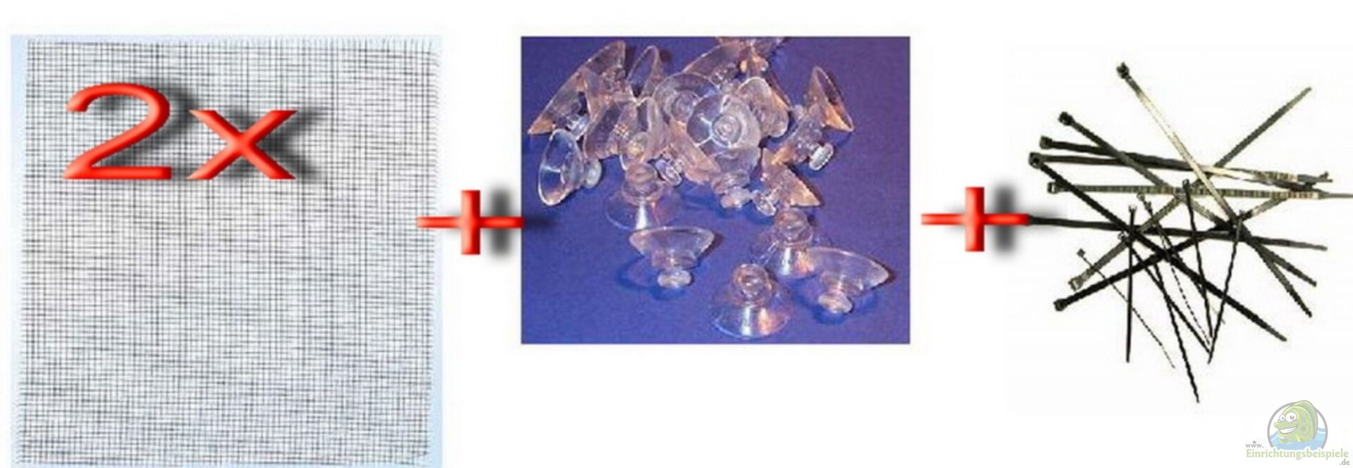 2. ein paar kleine Löchlein ins (evtl. zu enge) Gitter schnippeln und die Saugnäpfe durchstecken