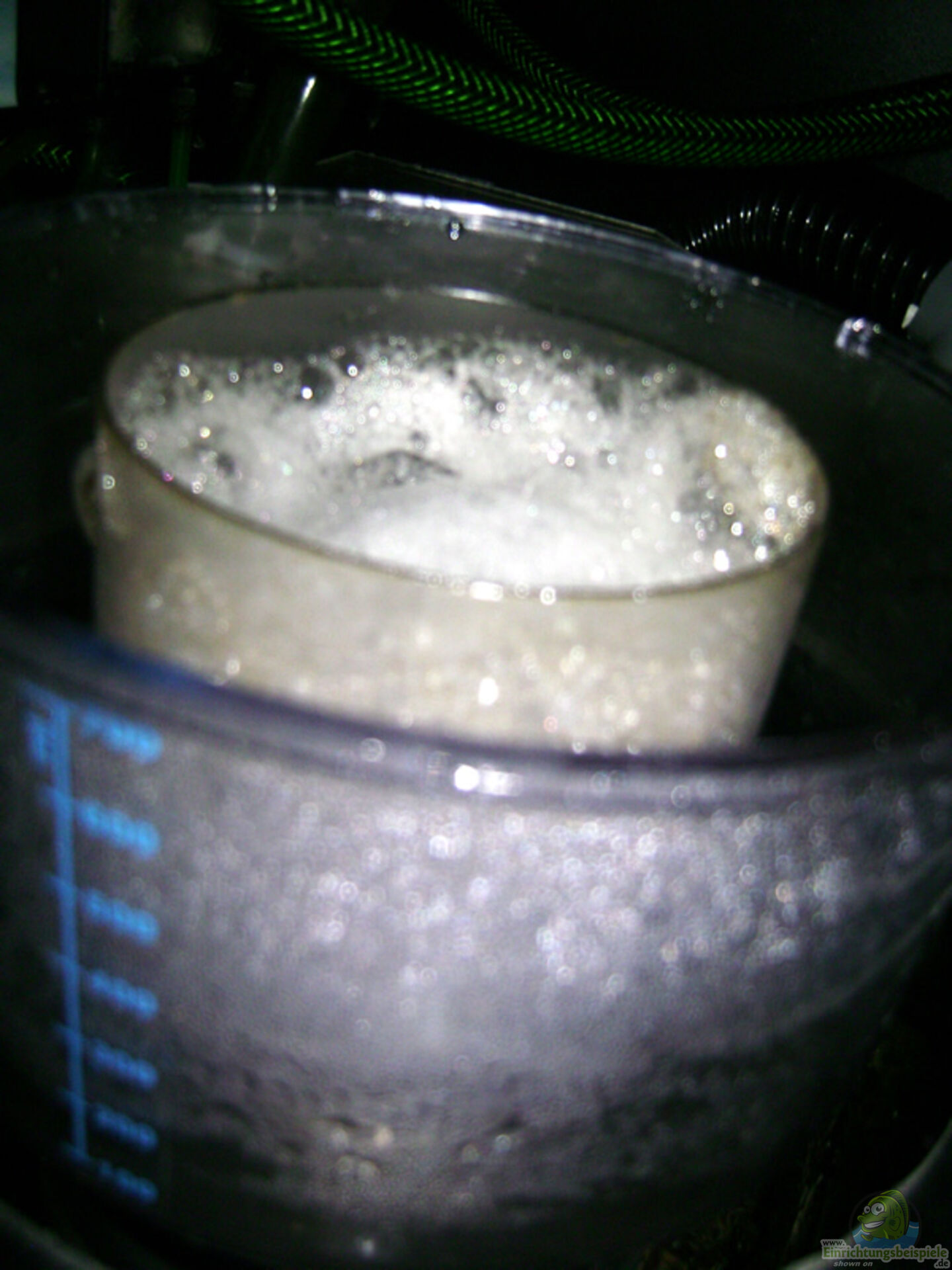 Das mit dem Schaum ist immer so eine Sache, zum einen darf er nicht zu wässrig und zum anderen nicht zu trocken sein. Beides führt zu einer verminderten Abschäumung. Zwar ist der 9410 so konstruiert, dass es kaum notwendig ist Einstellungen vor zu nehmen, trotzdem ist darauf zu achten, dass das Abwasser nicht zu hell oder gar zu dunkel ist. Ein satter Braunton ist ideal! Mittels eines Rohres mit aufgesetzten Postfilter, der in der Höhe verstellt werden kann, wird die Konistenz des Schaumes leicht nach reguliert.