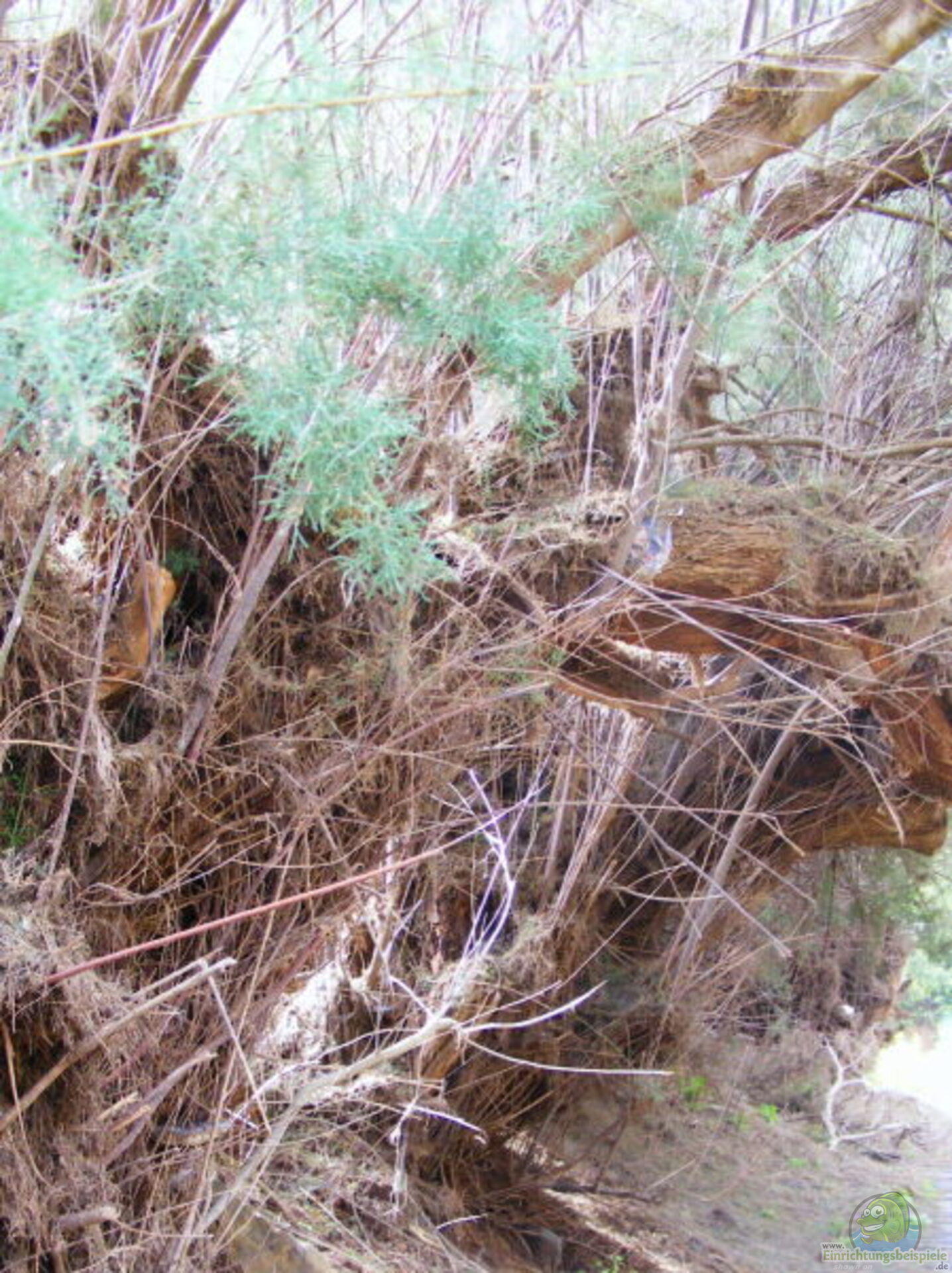 Eines sollte jedes Becken aufweisen, eine Randbepflanzung, die eine gleichzeitige Beschattung geben kann, Wurzeln die ausgewaschen sind, aber auch übereinandergefallene Häufungen zeigen und Stellen, die durch Geröll (??berschwemmungscharacter) zeichnen, sowie evtl. Sandbänke, da sich in manchen Biegungen von Naturgewässern Sedimente ablagern.