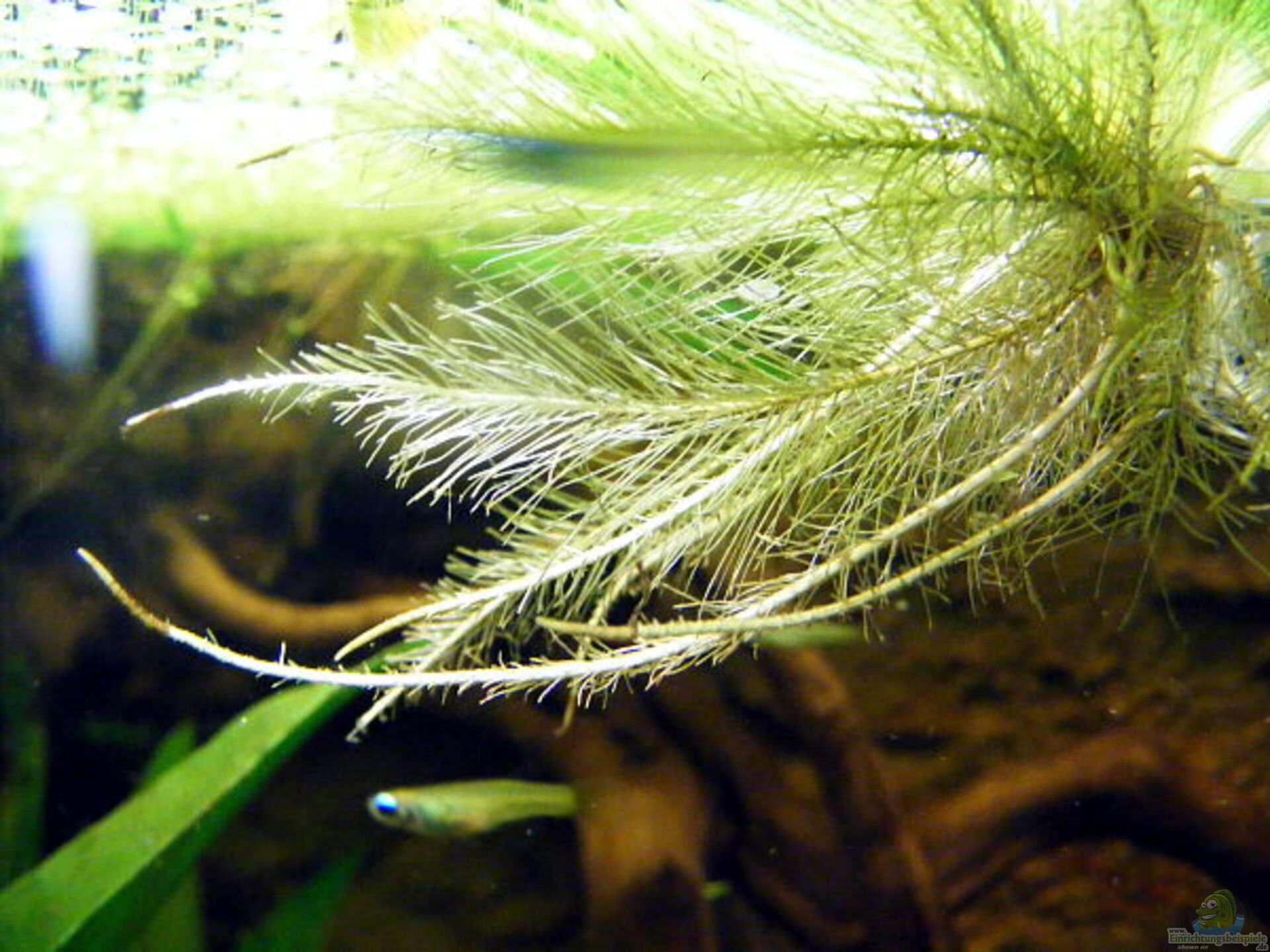 Sie bildet sehr lange feinfiedrige Wurzeln aus und diese dienen auch vielen Fischen als Schutz und Beschaffung von Nahrung wenn sich z. Bsp. Futter eingehängt hat. Die Pflanze vermehrt sich durch Ausläufer, die sich selber von der Altpflanze trennen. Dadurch bildet sich ein Teppich , der nach Bedarf wieder auszulichten ist, sonst sterben die darunter gehaltenen Pflanzen.