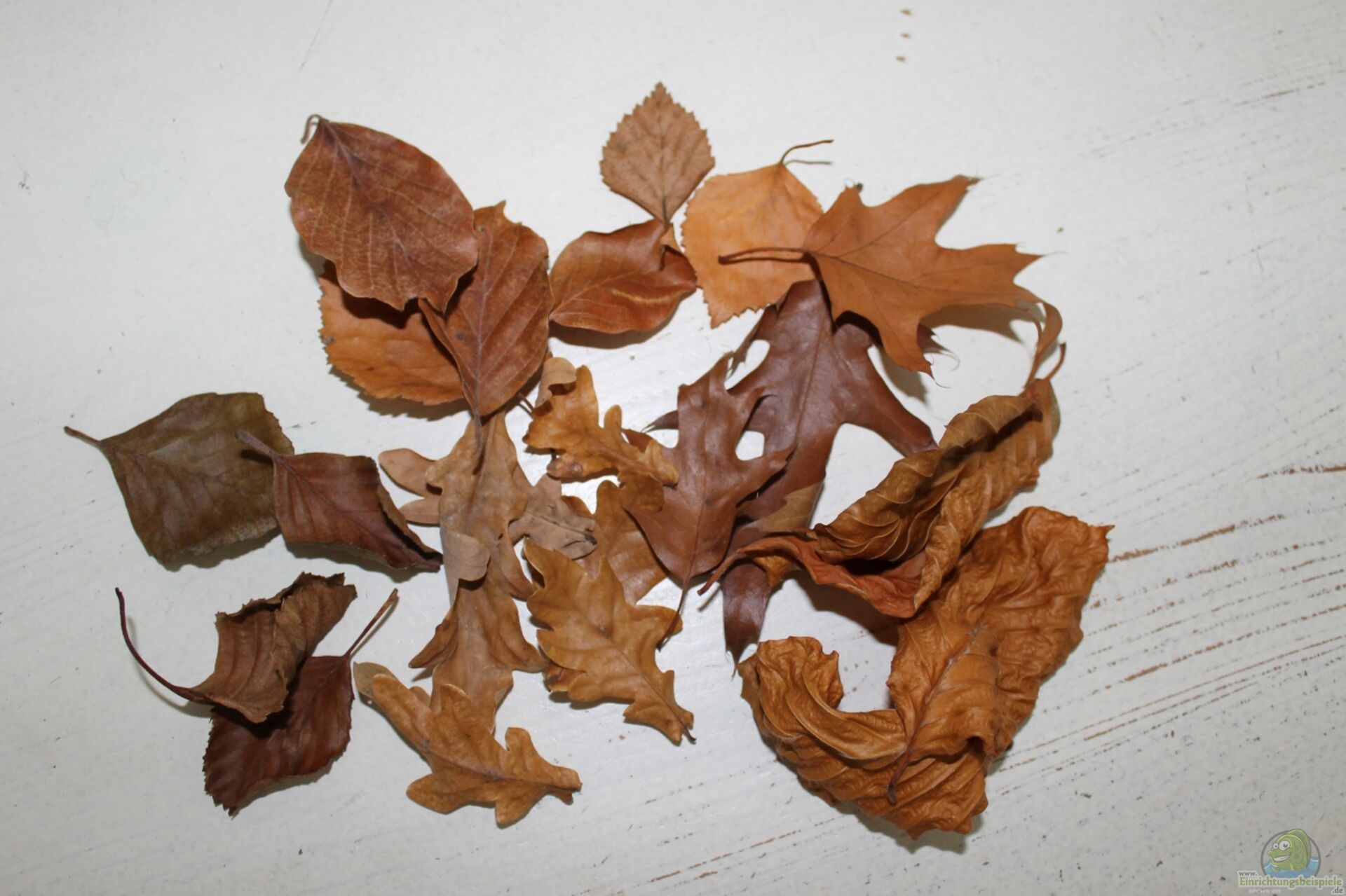 Manche halten es so, das sie die braunen Blätter, die noch am Baum hängen absammeln. Ich nutze auch Blätter, die schon auf dem Boden liegen, sie sollten allerdings unversehrt sein(Raupen, Milben, Verpilzung o.ä.) und nicht von der Stra??e gesammelt werden, wegen der evt Schadstoffbelastung bei Wirbellosen. Auch sollten die Blätter schon richtig braun und nicht gelb oder gar noch grün sein.
