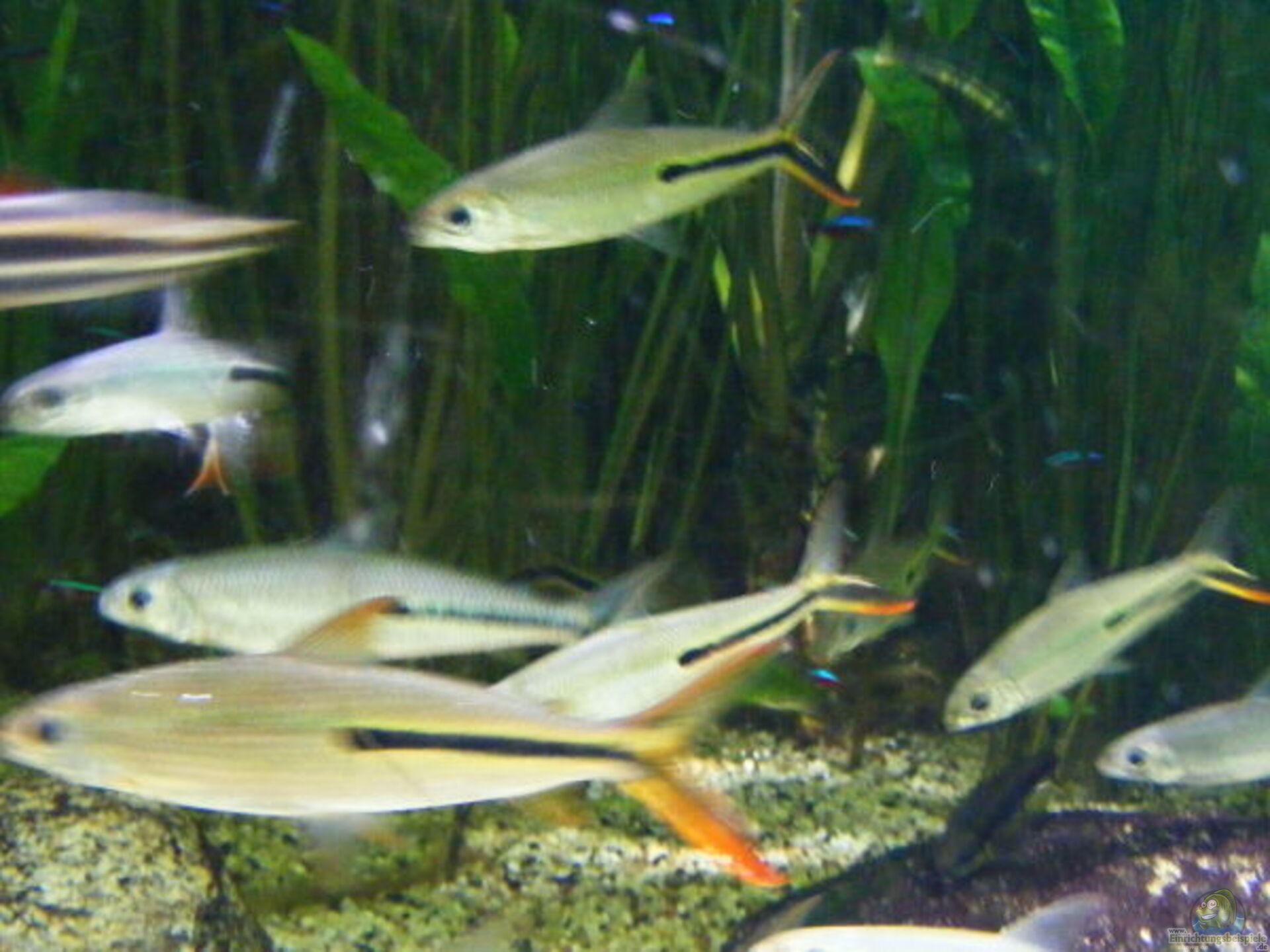 Besonderes /Becken : eine scheue Salmlerart. Bei Neubesatz mindestens 3 Wochen Eingewöhnungszeit zulassen ! Der Fisch ist eine sehr schwimmfreudige Art, die auch auf Grund seiner Grö??e ein Becken ab 1, 2 m haben sollte, bei Schwärmen ab 20 Tieren nicht unter 2m Kantenlänge. Ein intensiver Schwimmer, der das ganze Becken ausschwimmt. Da der Fisch schreckhaft ist , sollte eine lockere bis dichte Randbepflanzung nicht fehlen, die eher aus Pflanzen mit grö??eren Blättern bestehen sollte, da sich die Fische dann besser verstecken können. Sieht sehr gut. Bei richtiger Ausfärbung ein wunderschöner Pflegling. Bei Gabe von essigfliegen und rotem Artemia eine bessere Farbausprägung.Gruppen nicht unter 10 Tieren, bei fehlen einer "Stammstärke" des Schwarmes bleibt der Fisch eher schreckhaft.Filterung über Torf , das Wasser sollte sauerstoffreich sein auf Grund seiner Agilität.