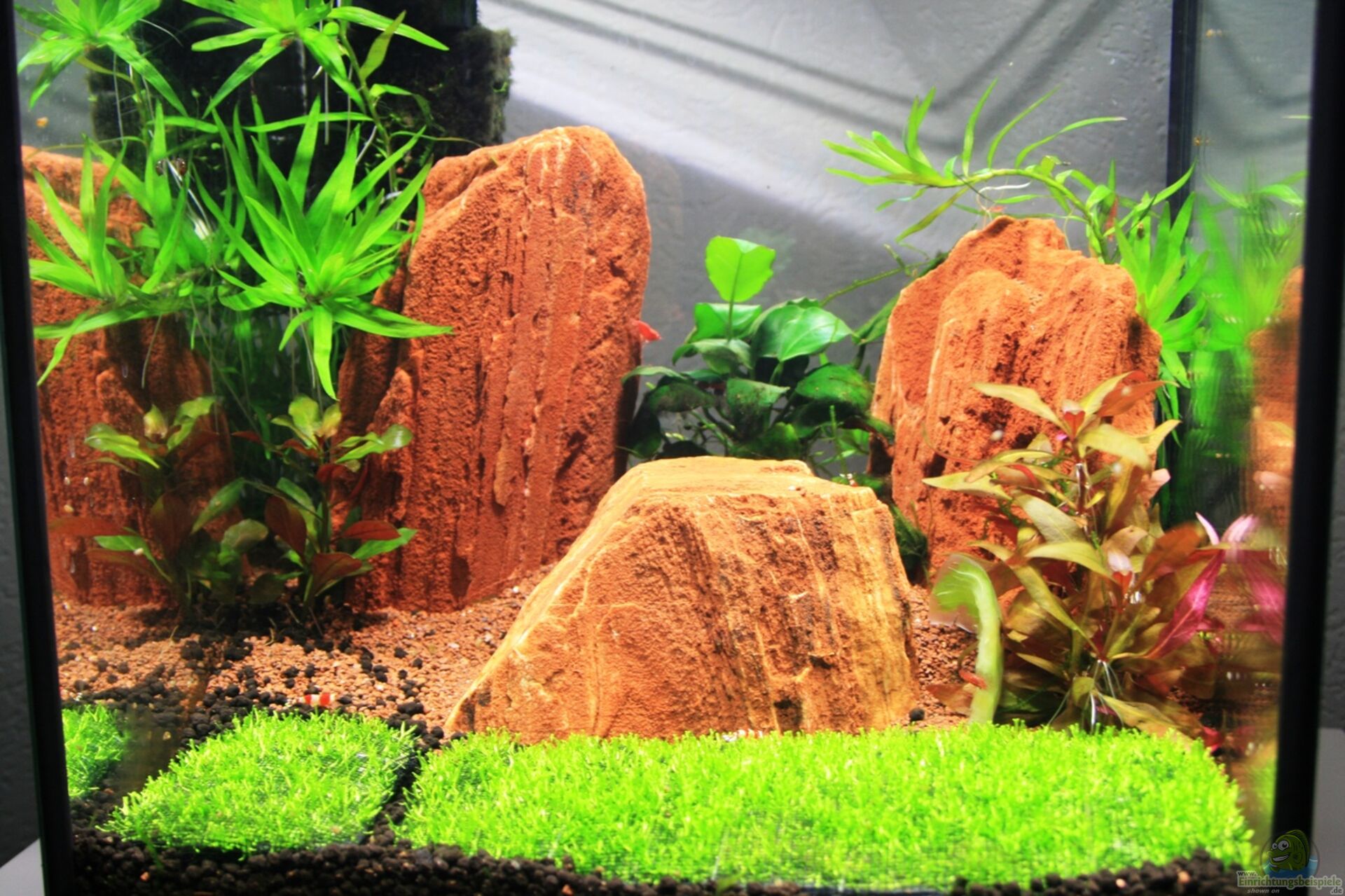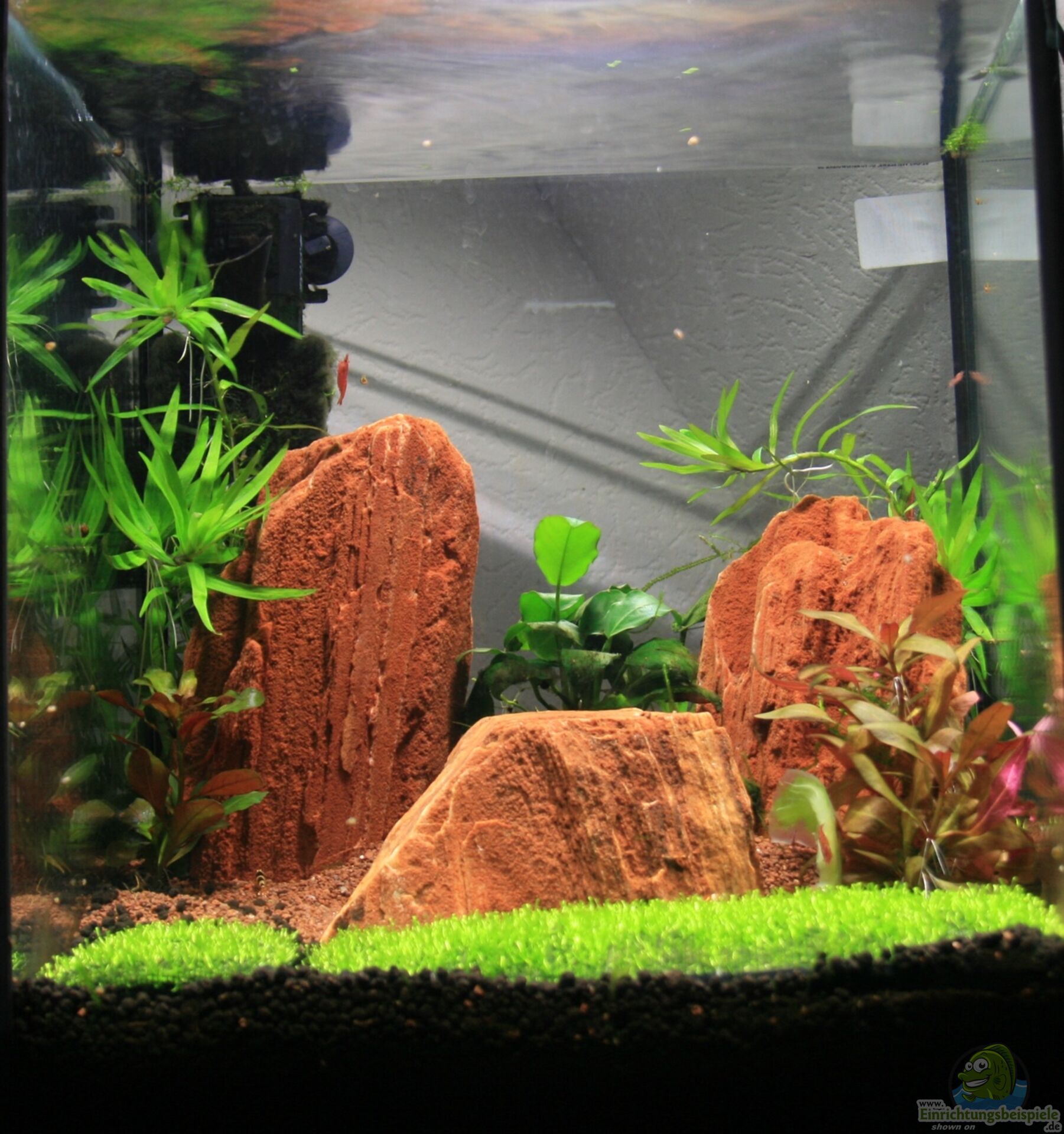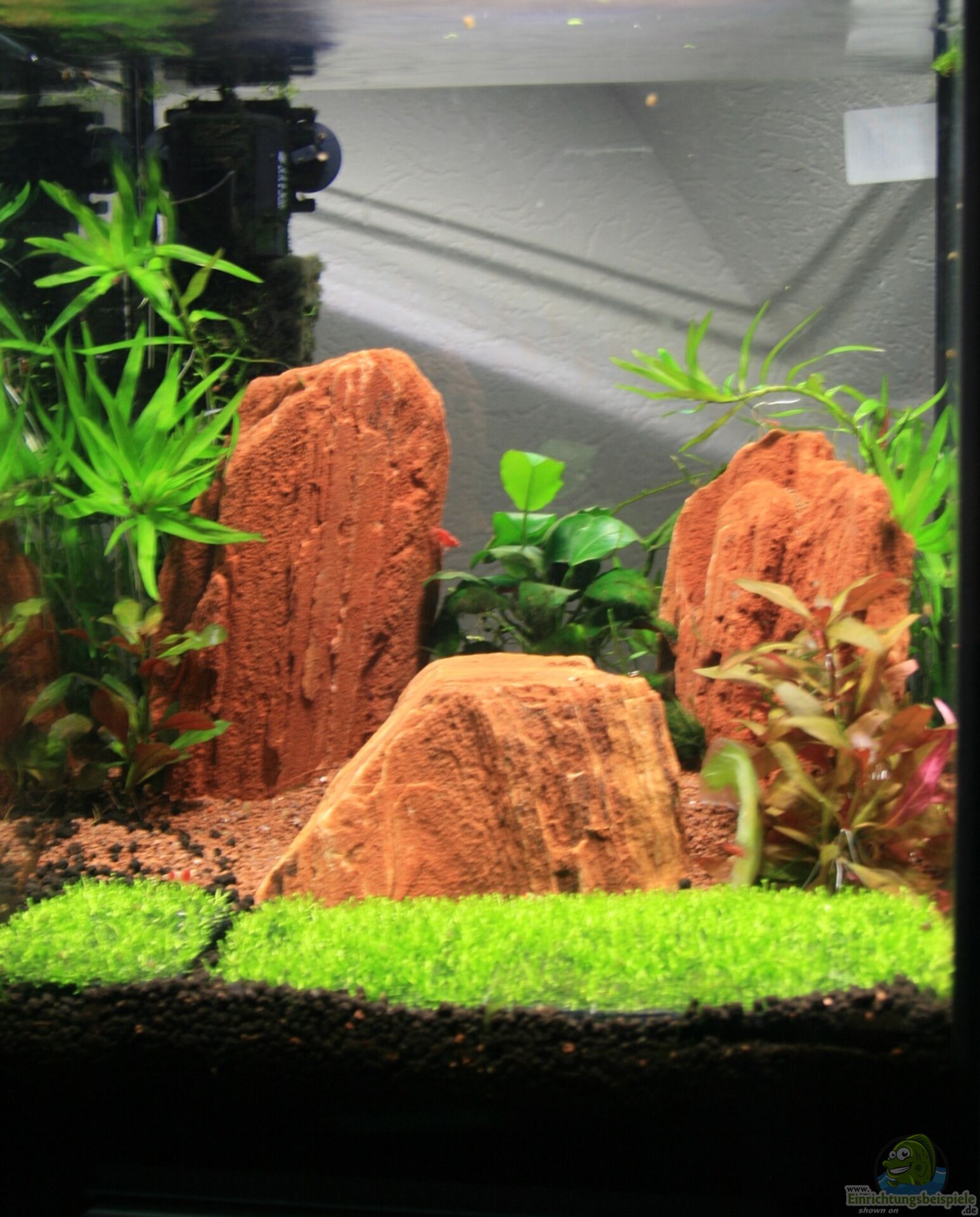 Die Steine nennen sich "Holzsteine", und als Bepflanzung habe ich in der Mitte eine Anubias, und die Pflanzen an der Seite sind mir noch nicht mal bekannt.