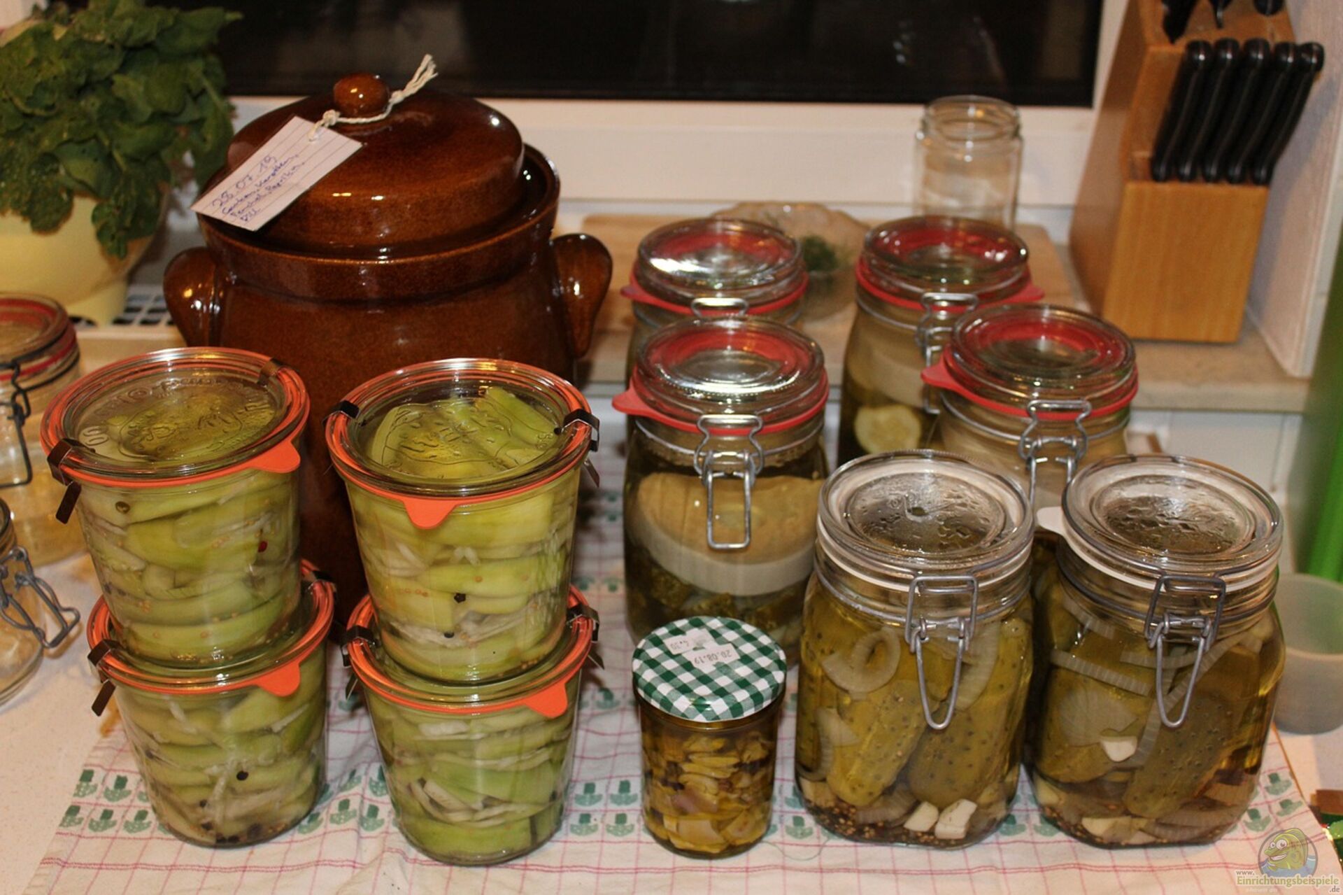 Das Einlegen ist besonders bei Gemüse beliebt. Essig wirkt konservierend durch seinen Säuregehalt, während Öl den Luftkontakt verhindert.
