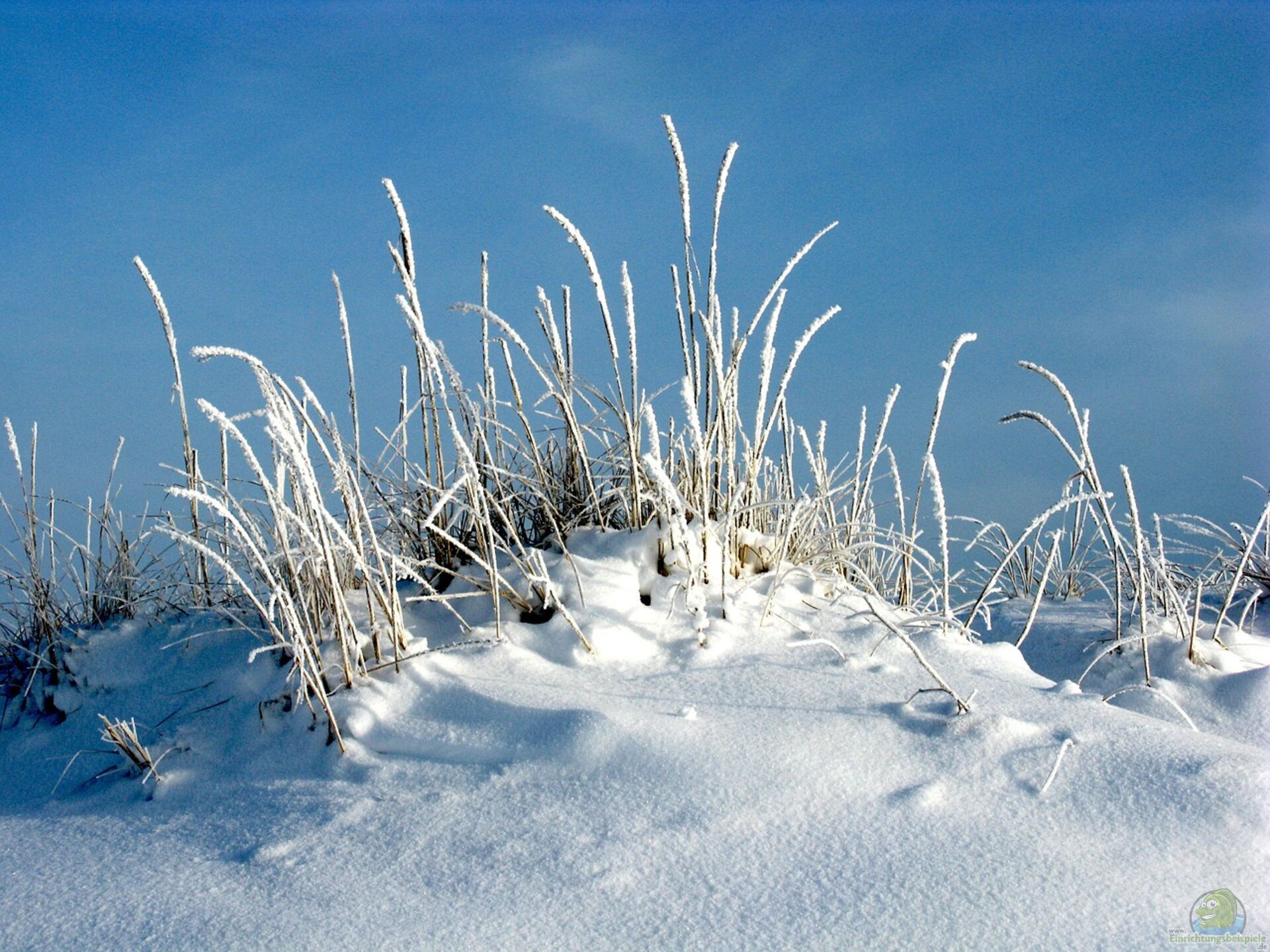 Viele Gräserarten wirken durch ihre Standfestigkeit und Struktur wie eine natürliche winterliche Skulptur. Besonders hochwüchsige Arten wie Chinaschilf (Miscanthus) oder Lampenputzergras (Pennisetum alopecuroides) bieten mit Schneekappen einen besonders reizvollen Anblick.