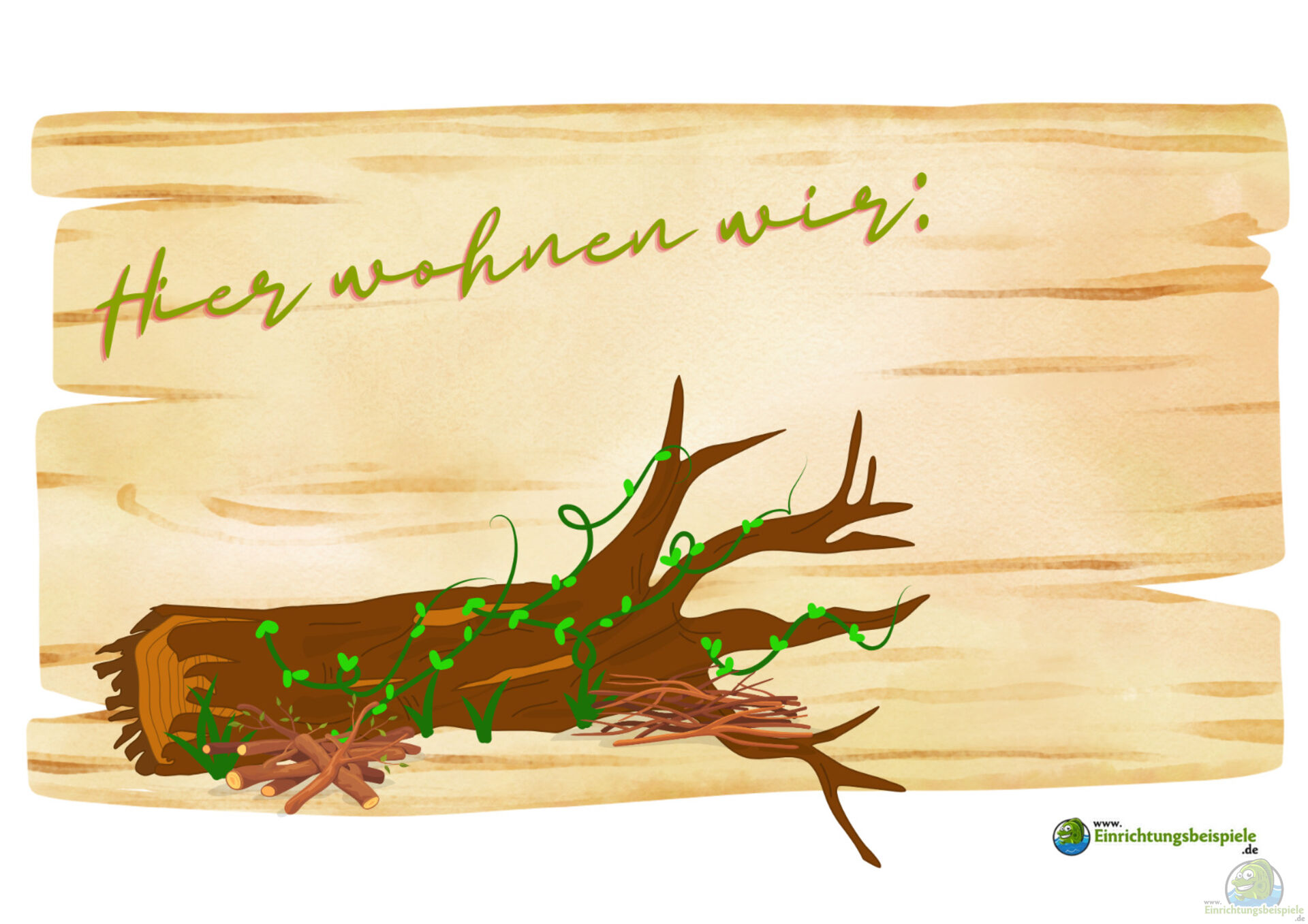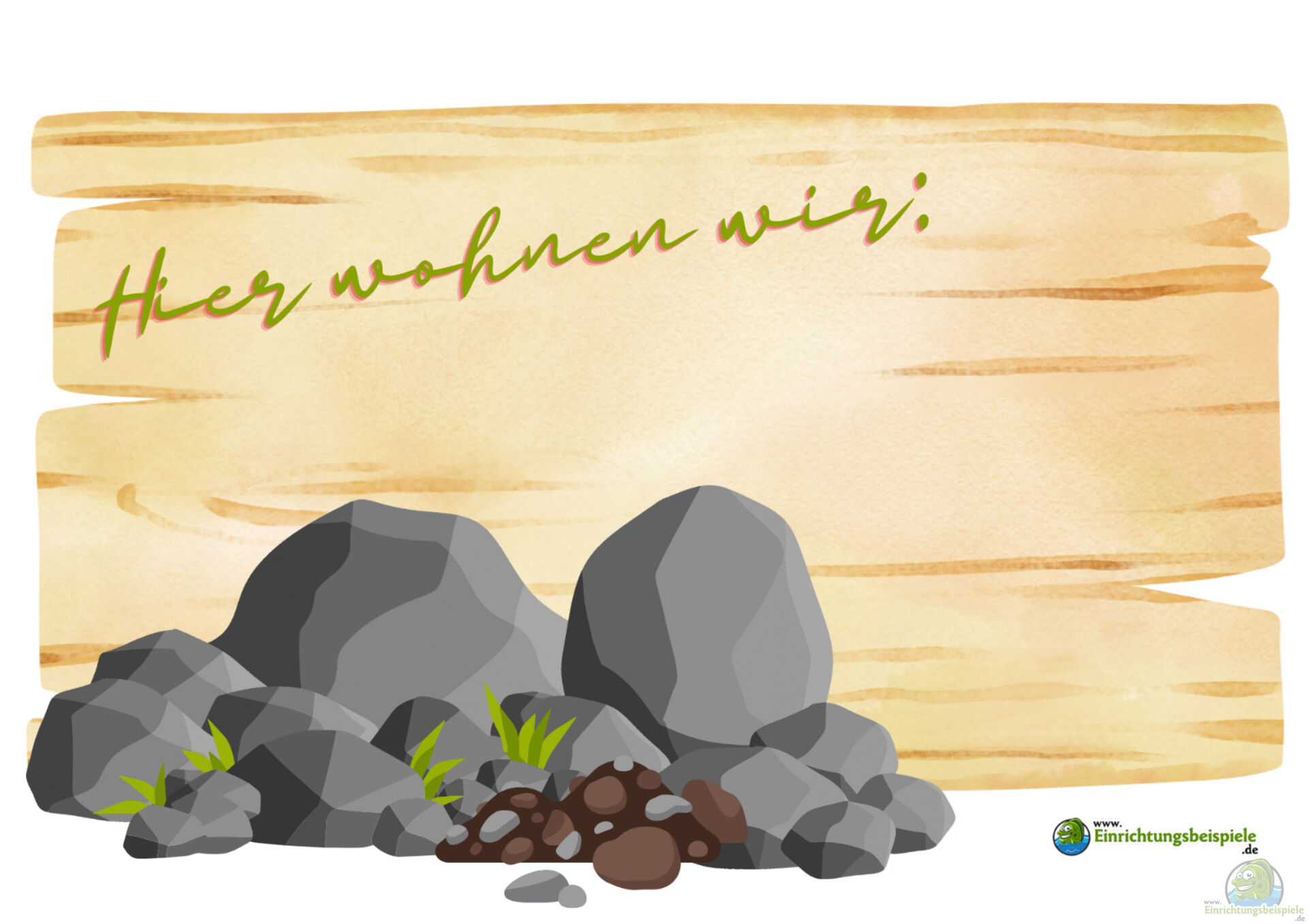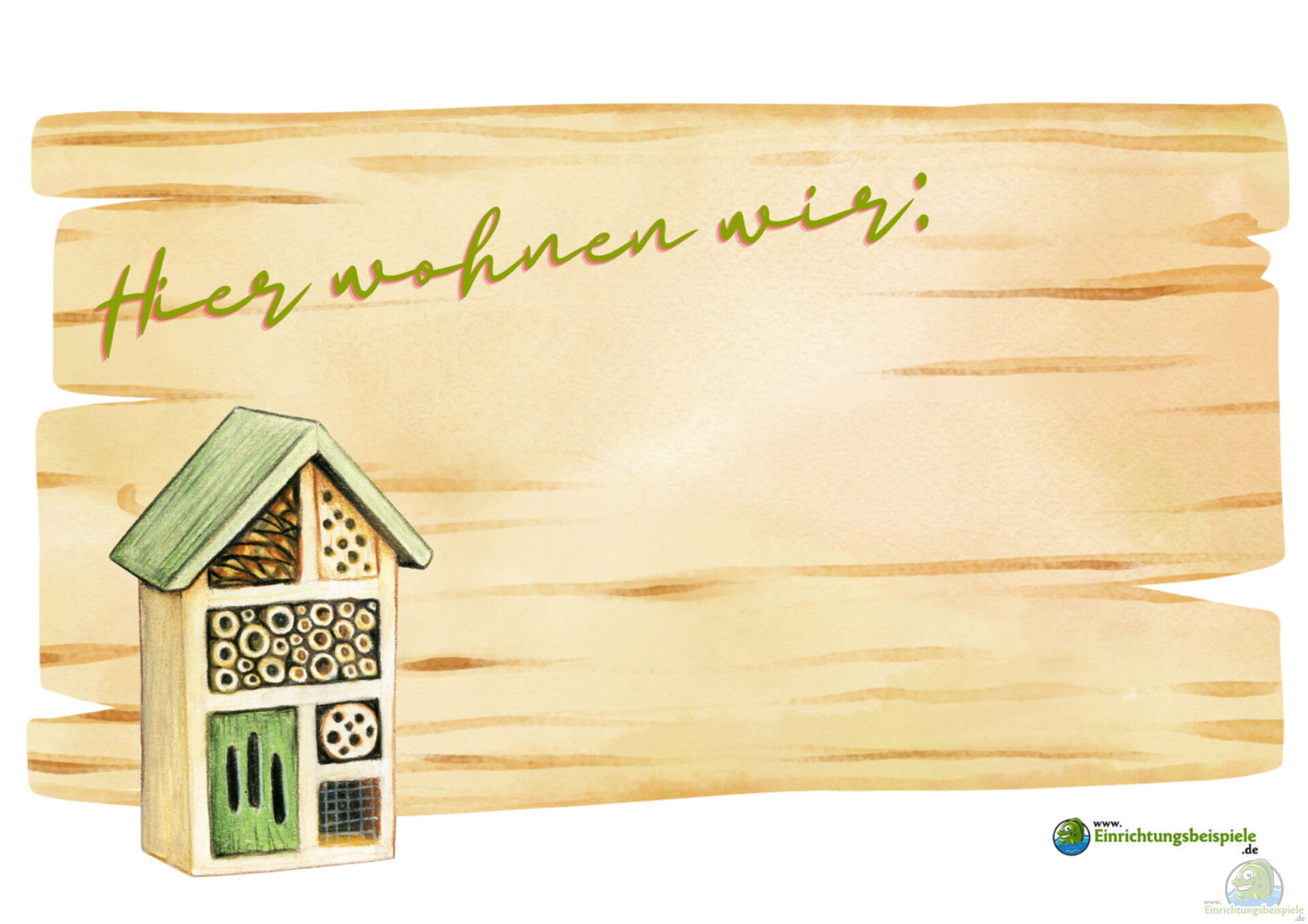 Ergänzt werden kann das Schild durch kleine Illustrationen, Fußabdrücke oder „Unterschriften“ der Tiere, die diesen Ort nutzen: „L. agilis – Zauneidechse“, „Bombus lapidarius – Steinhummel“, „Erinaceus europaeus – Igel“. Auch Piktogramme oder aufgemalte gemalte Spuren wirken sympathisch und lassen sich leicht anpassen.