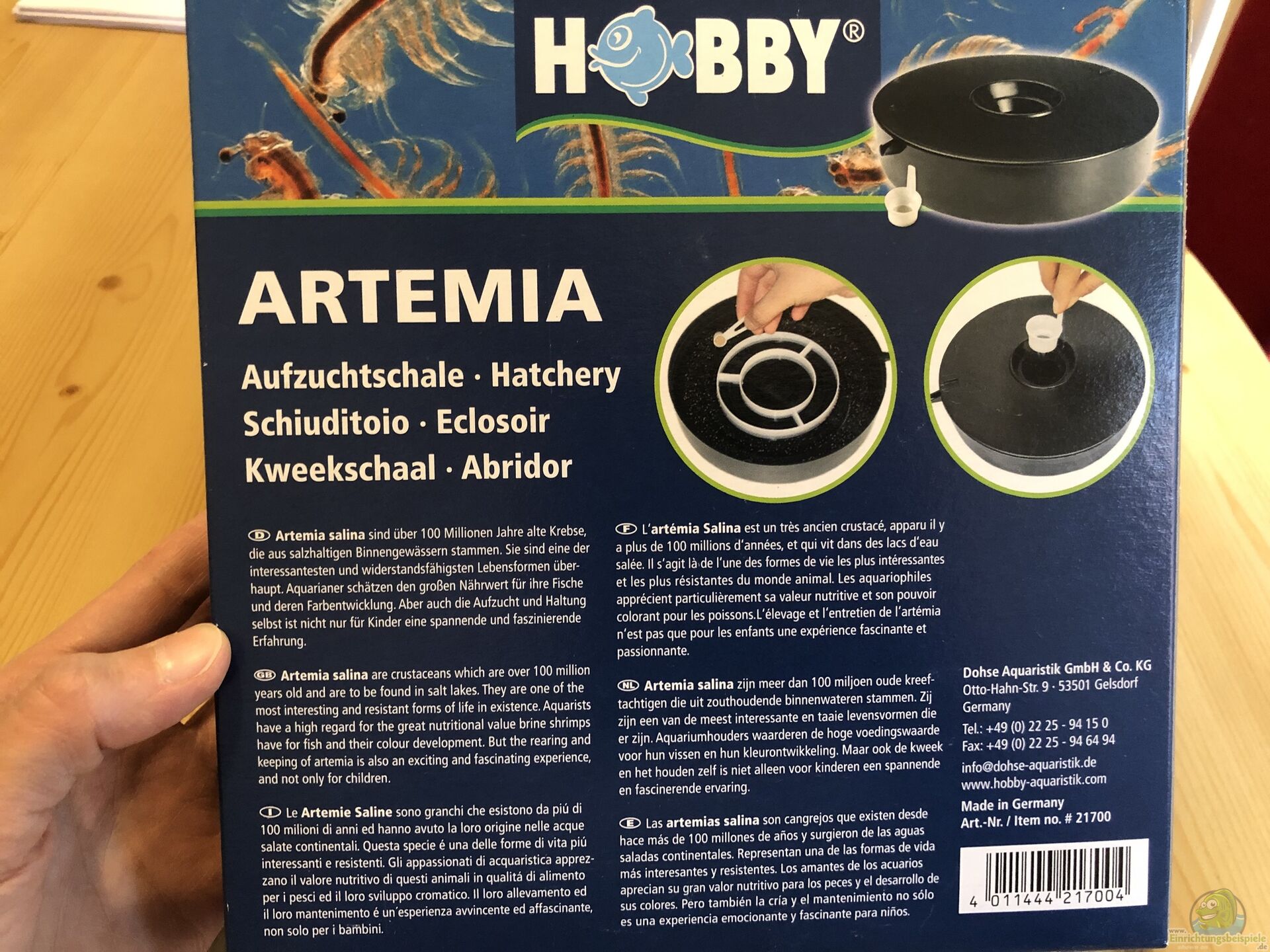 Aufgrund eines Tipps eines befreundeten Aquarien-Kollegen habe ich mir die Artemia Aufzuchtschale von Hobby gekauft. Er hat vorher auch andere Systeme ausprobiert, doch für ihn machte diese Ansetz-Schale für Artemia Nauplien am meisten Sinn. Da ich einfach nur neugierig war, habe auch ich mir dieses Teil besorgt und ausprobiert. Hier das Resultat.