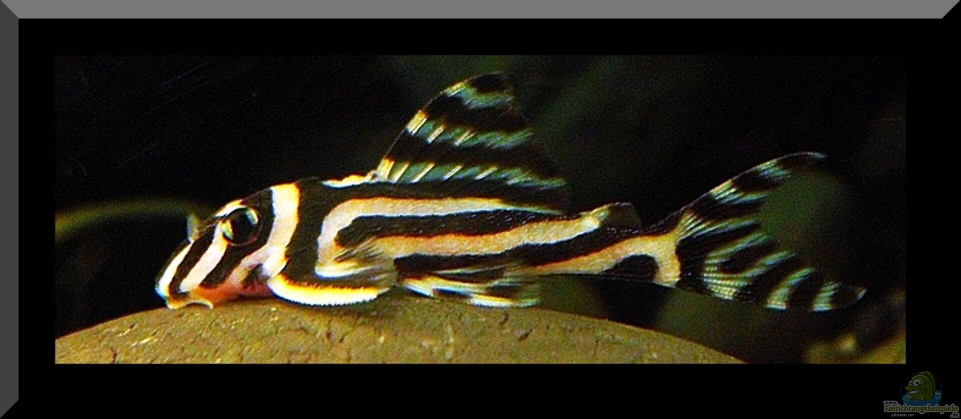 Dieser ca. 8 ??? 10 cm gro?? werdende Harnischwels ist wohl der am auffälligsten gezeichnete Vertreter seiner Gattung welcher wohl ausschlaggebend dafür verantwortlich war das viele diese und andere L- Welse im heimischen Becken pflegen wollten