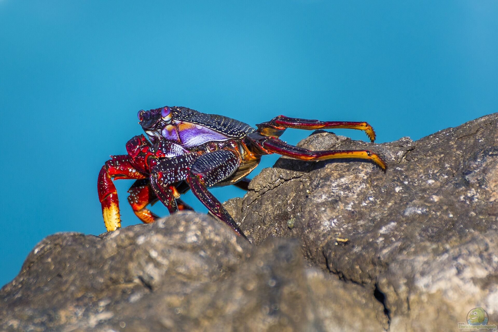 Krabben stellen vielfältigere Anforderungen an ihren Lebensraum. Sie benötigen häufig ein Aquaterrarium mit einem Wasserteil für die Kiemenatmung und einem Landteil, um sich zu bewegen. Einige Arten, wie Mangrovenkrabben, kommen mit Brackwasser zurecht, während andere Süßwasser oder salziges Meerwasser bevorzugen. - Fütterung
