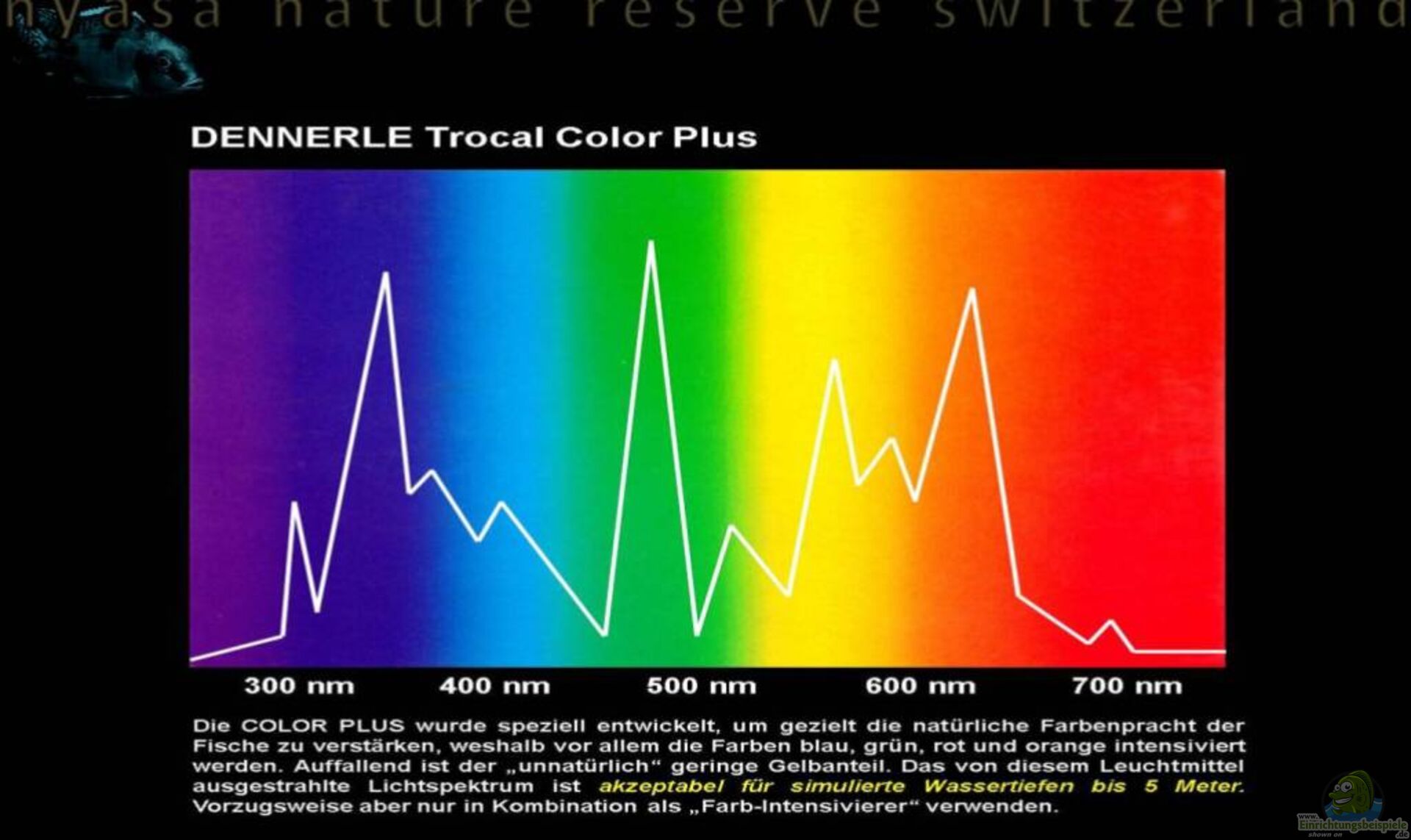 Bei der Planung der Aquarien-Beleuchtung ist hier also zu berücksichtigen, dass einerseits weniger Licht benötigt wird (dunkel) und, dass die zu wählenden Leuchtmittel keine roten und orangen Farbanteile enthalten.