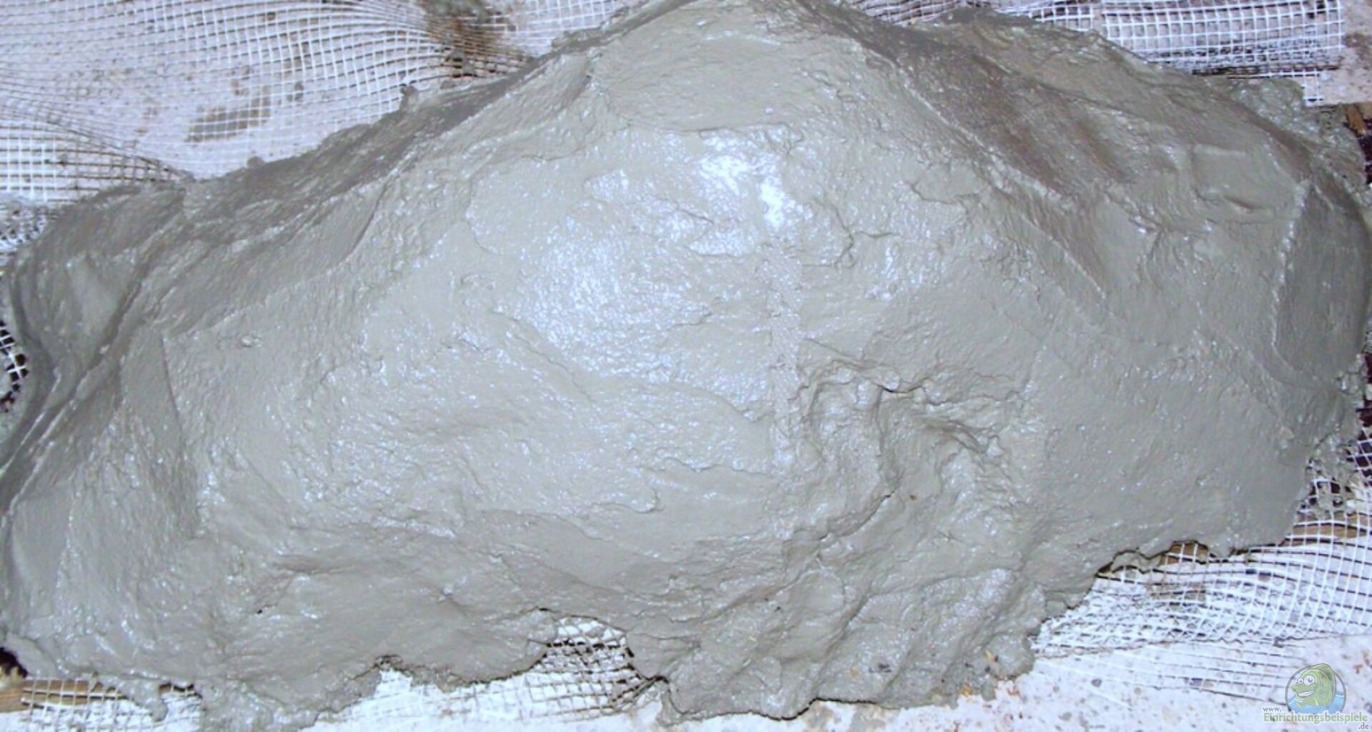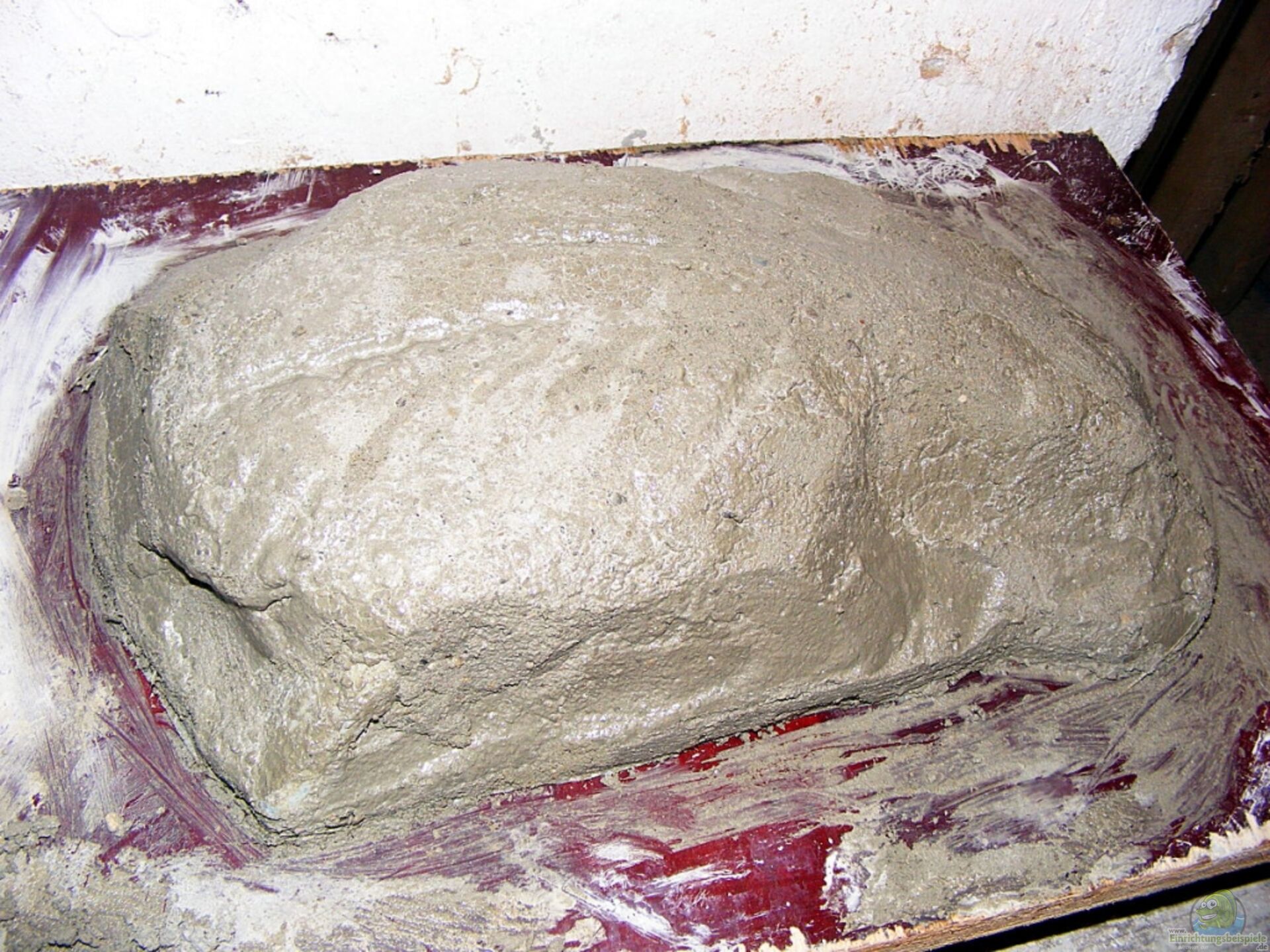 Dann das Sandzement-Gemisch fertig sahnigkonsistent auftragen...nach einer Zeit glattstreichen , bzw. Konturen des späteren Layouts nachzeichnen , weiter trocknen lassen und fertig.